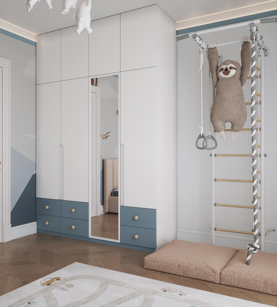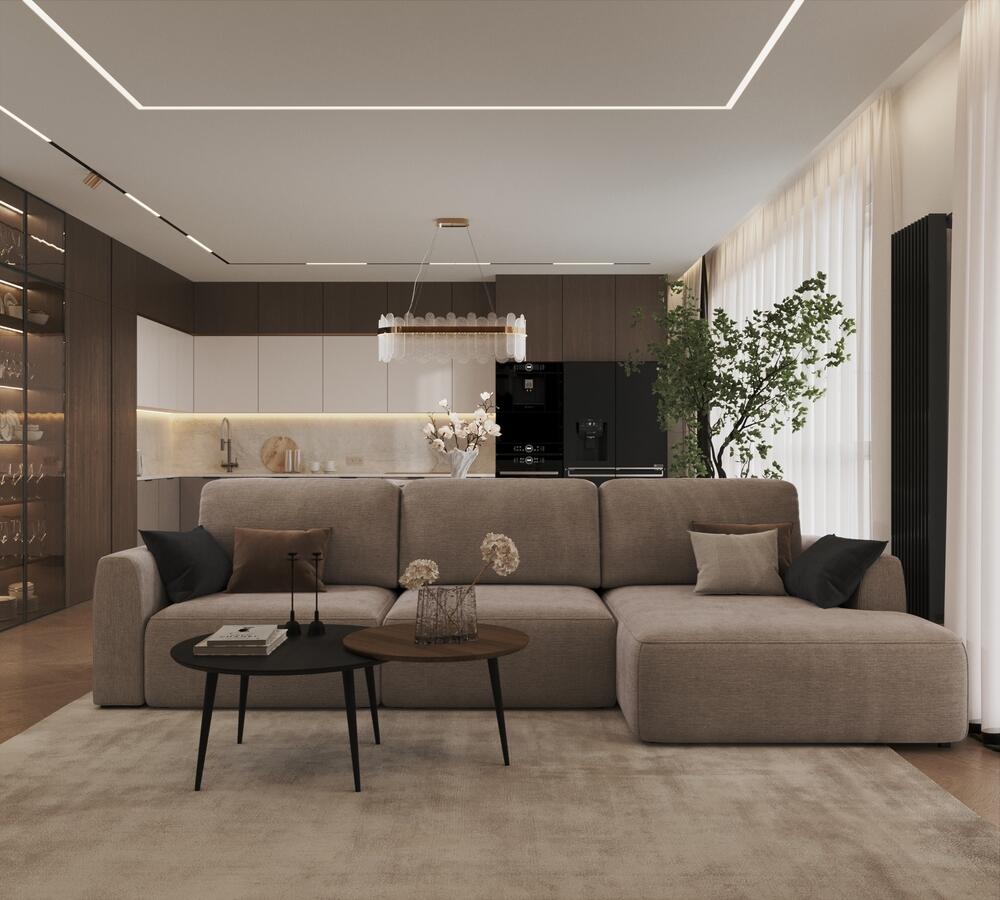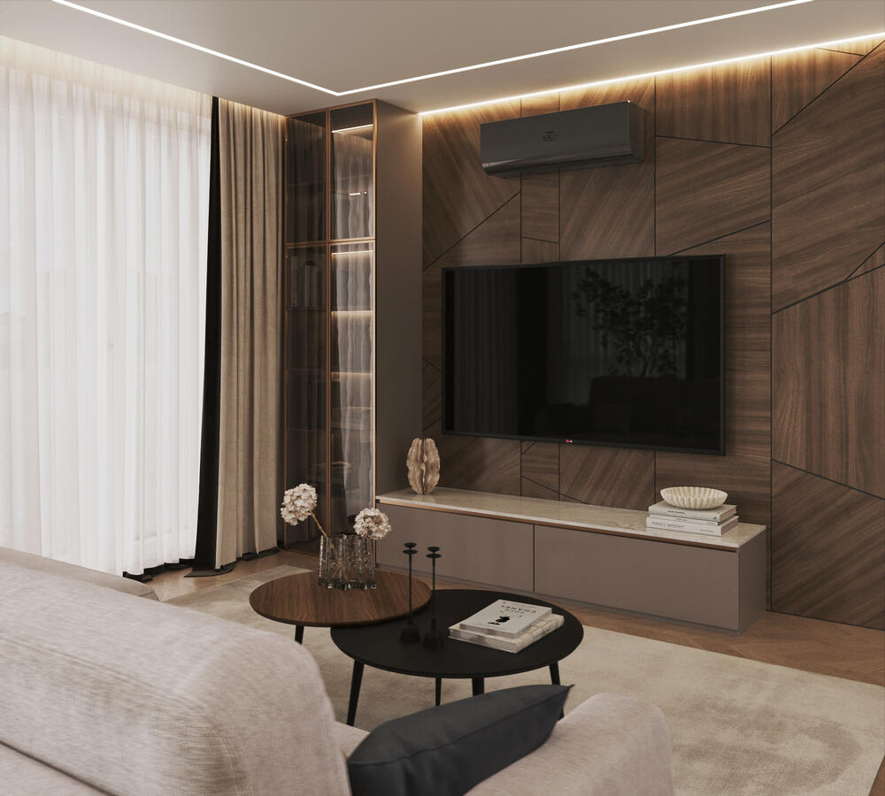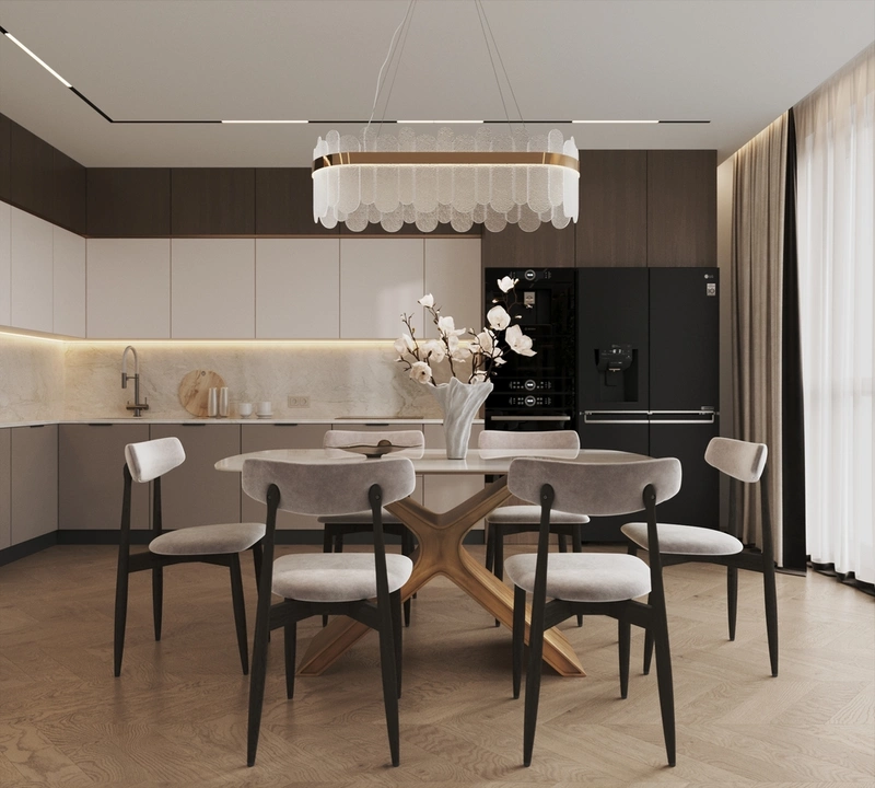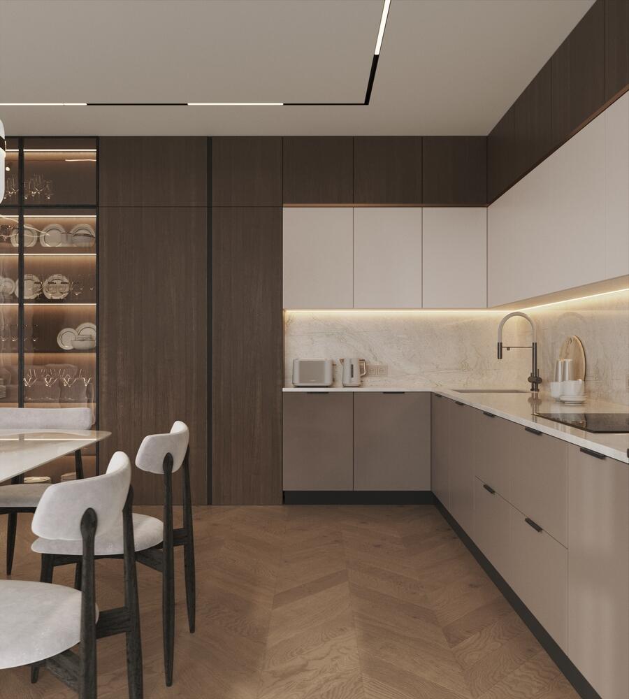 Дизайн интерьера квартиры в стиле современная классика с элементами дерева в ЖК "Наука" - 112 м2
