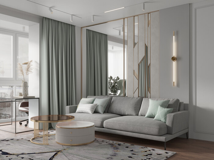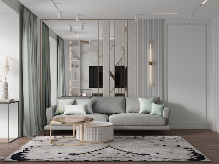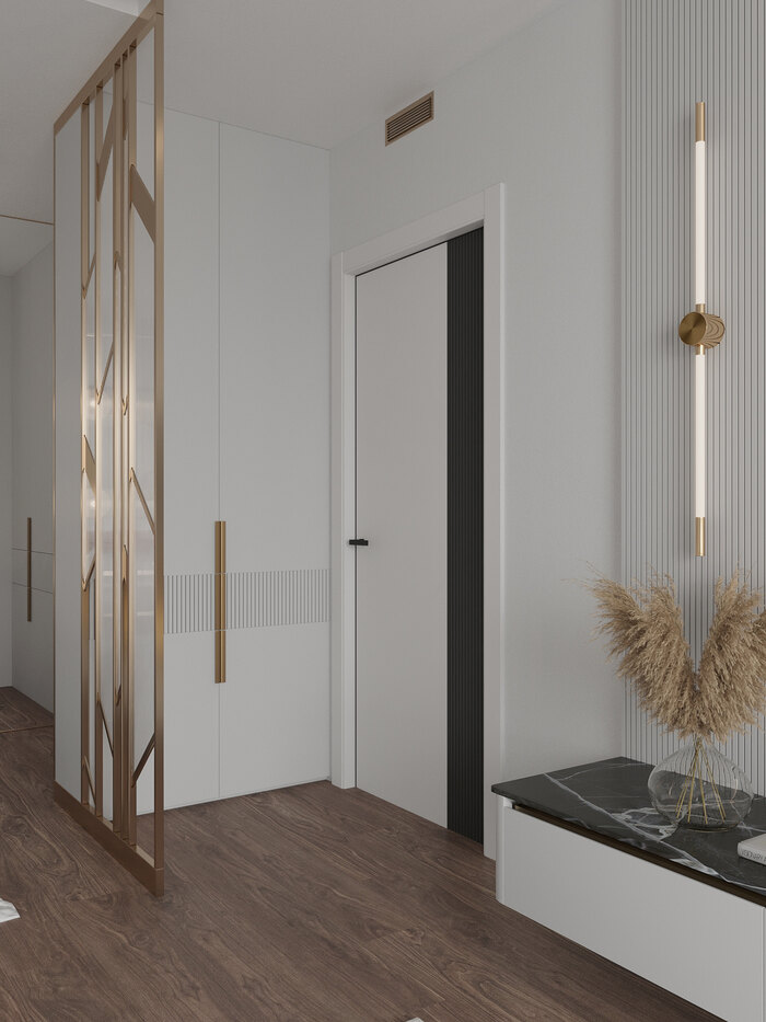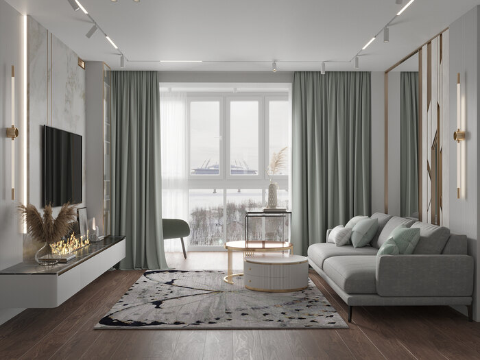Дизайн интерьера квартиры в ЖК «Золотая гавань» в стиле легкая современная классика с элементами арт-деко - 76 м²