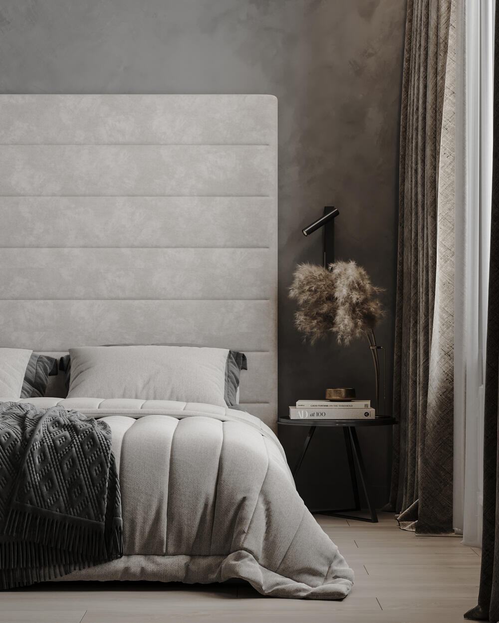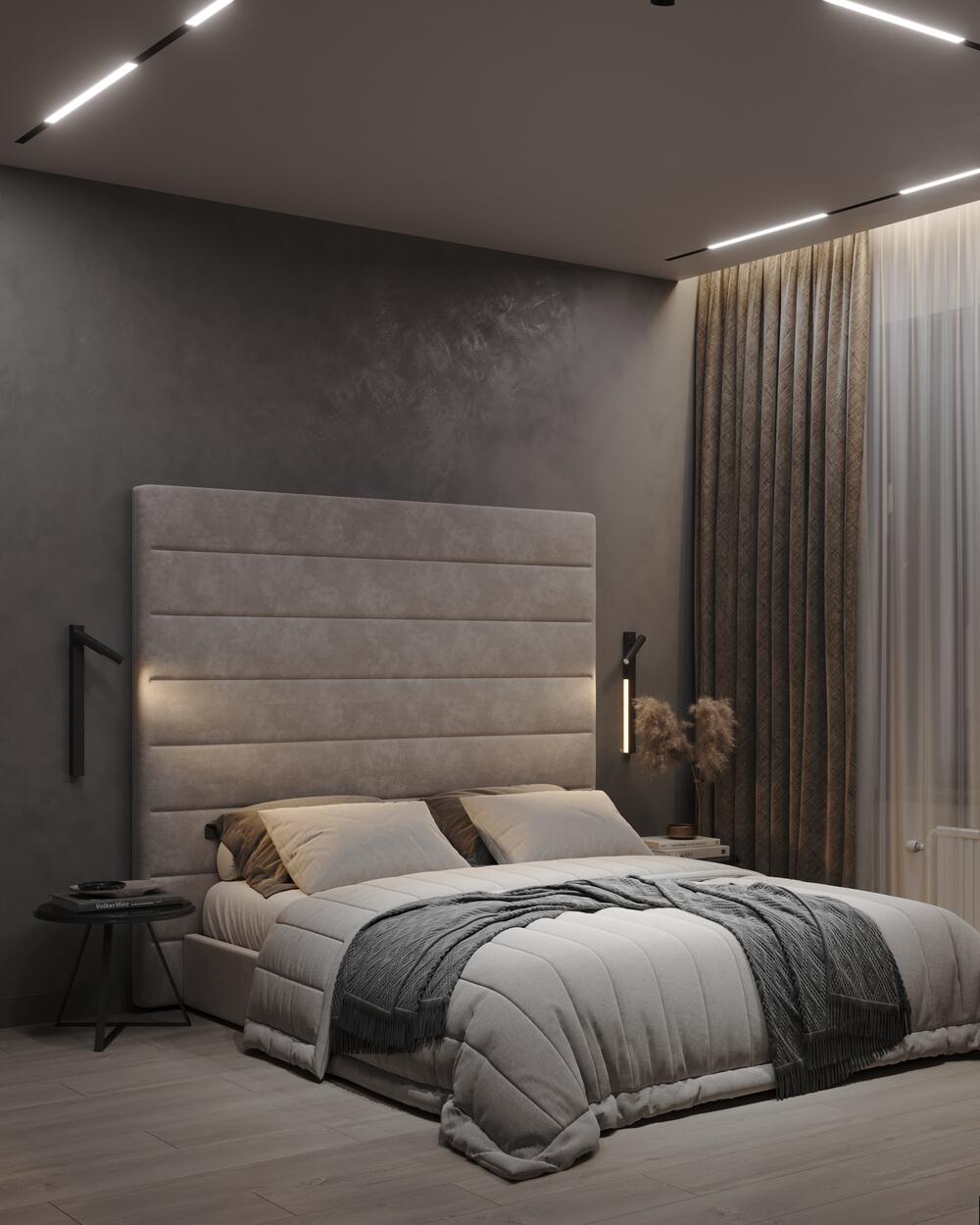 Мы использовали натуральные материалы и приятные на ощупь ткани, чтобы спальня дарила не только визуальное, но и тактильное удовольствие.