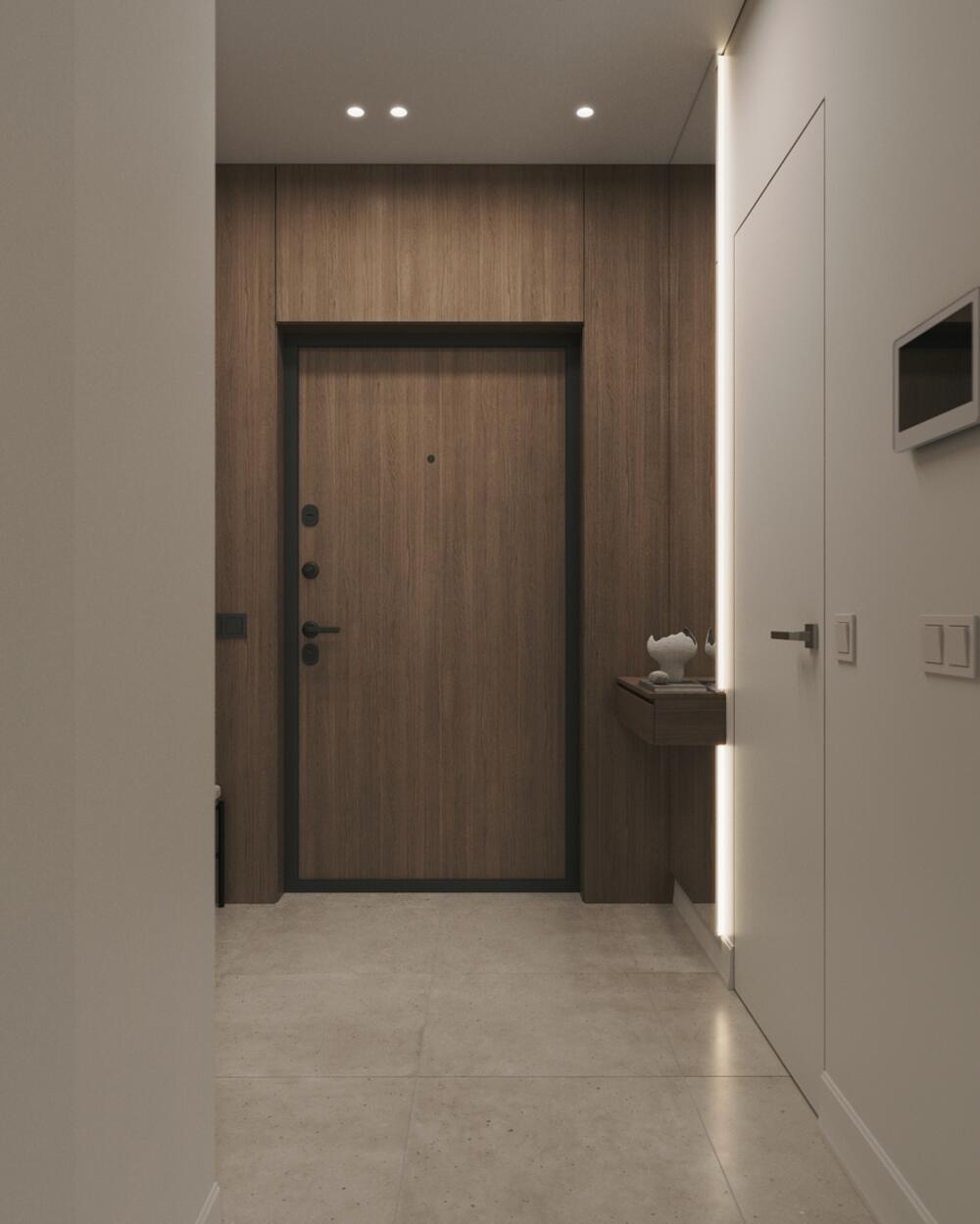 Прихожая небольшая, но продуманная до сантиметра — здесь всё решено просто и удобно.