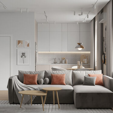 Минималистичный дизайн интерьера квартиры в стиле джапанди в ЖК «Amo» - 50 м²