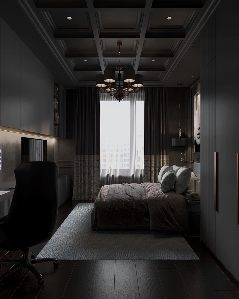 Создать интерьер в строгом стиле, подходящий взрослому серьёзному мужчине