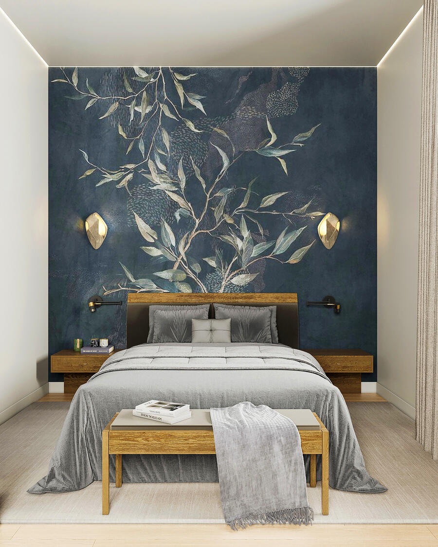 Разработать интерьер с элементами стиля джапанди с яркими акцентами и необычными деталями.