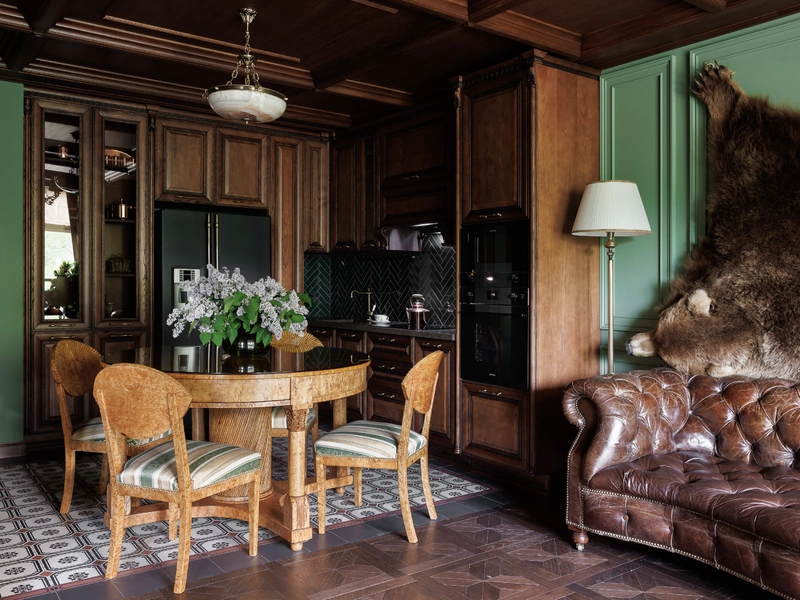 Натуральное дерево — панели и мебель формируют основу стиля, а также служат десятилетиями, сохраняя внешний вид.
