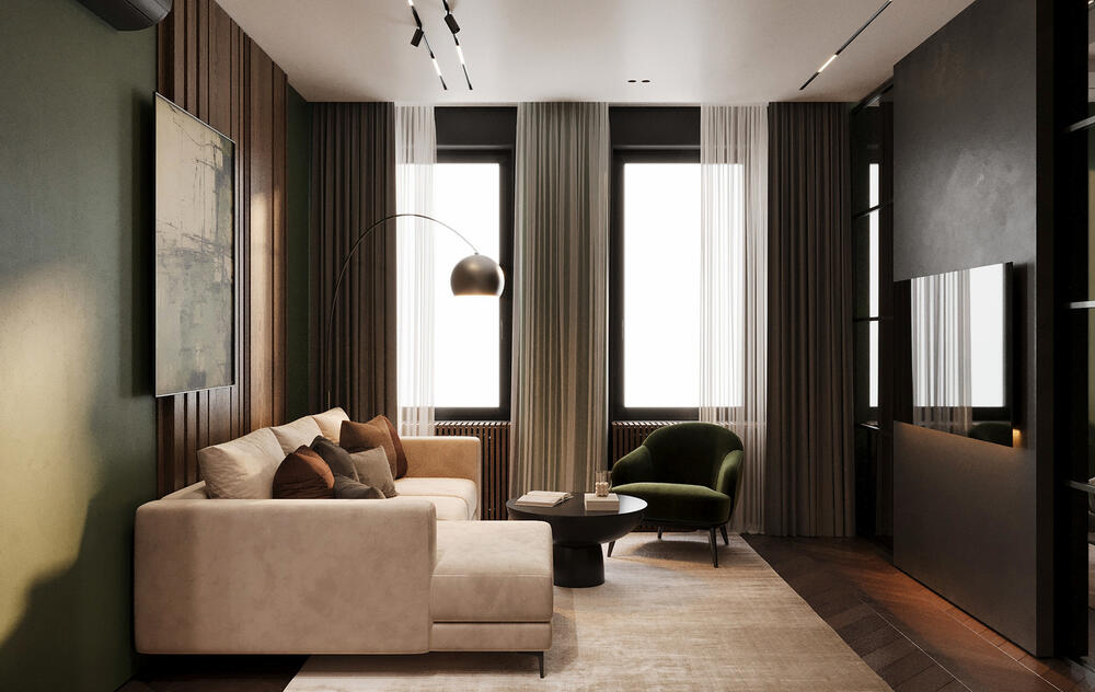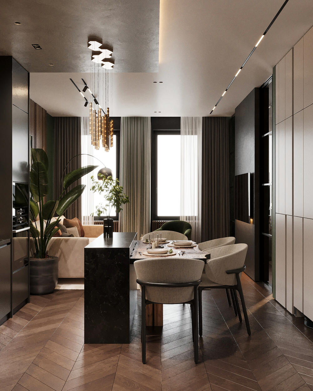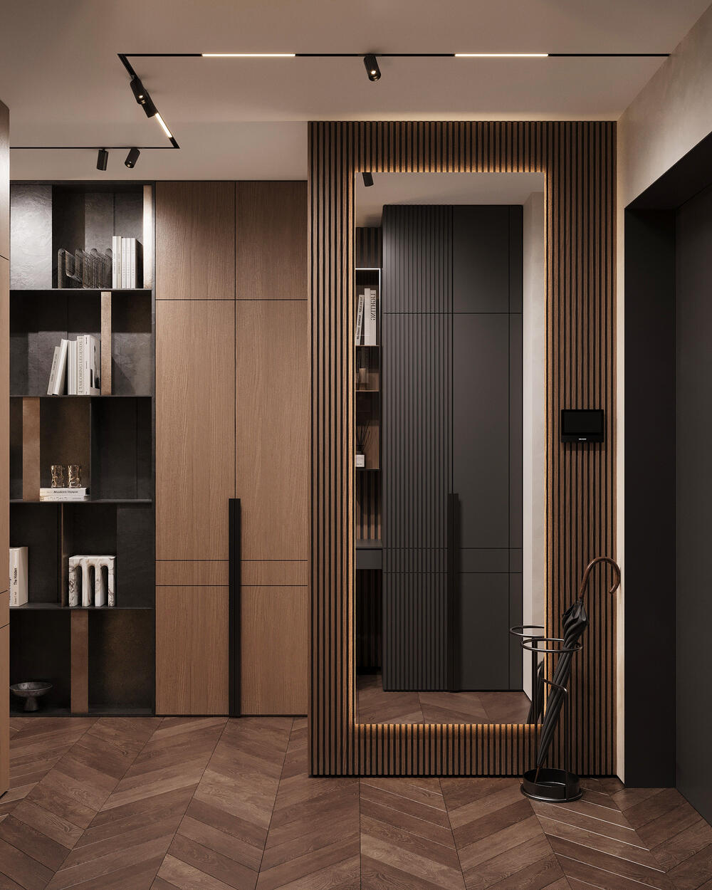 Посмотреть проектДизайн проект интерьера квартиры с темными акцентами в ЖК «Притяжение» - 97 м²