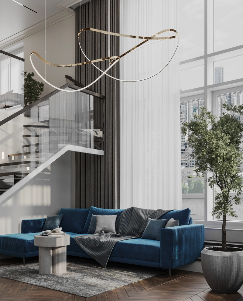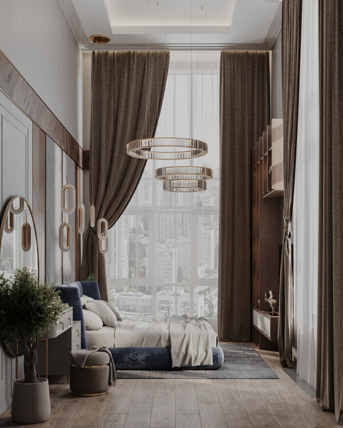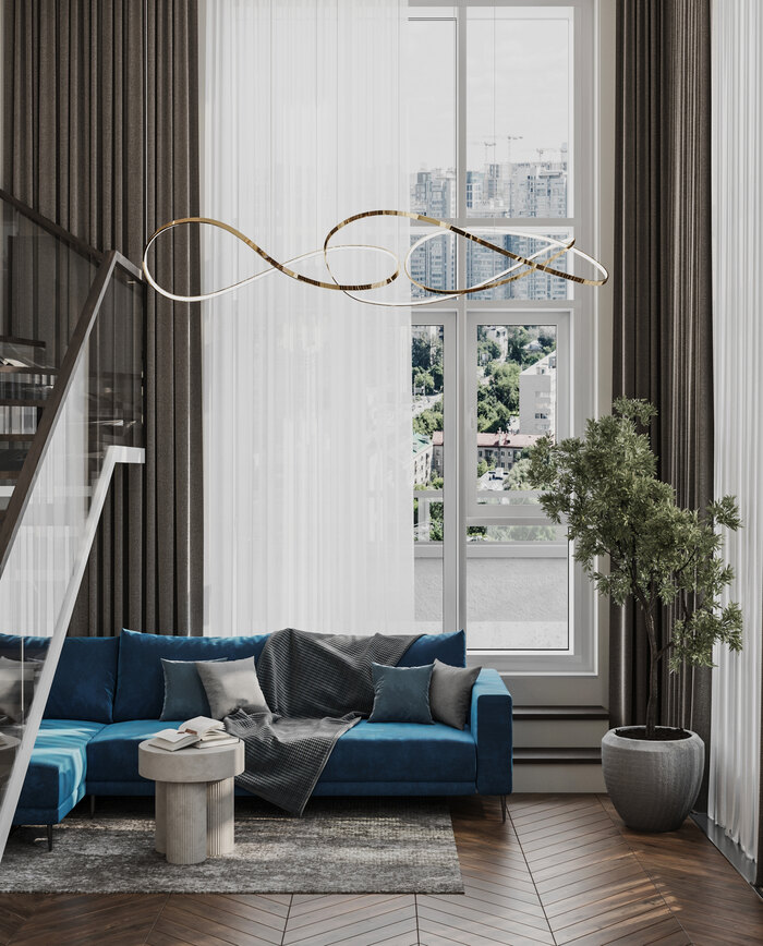 - Обыграть потолки квартиры в 4,5 метра