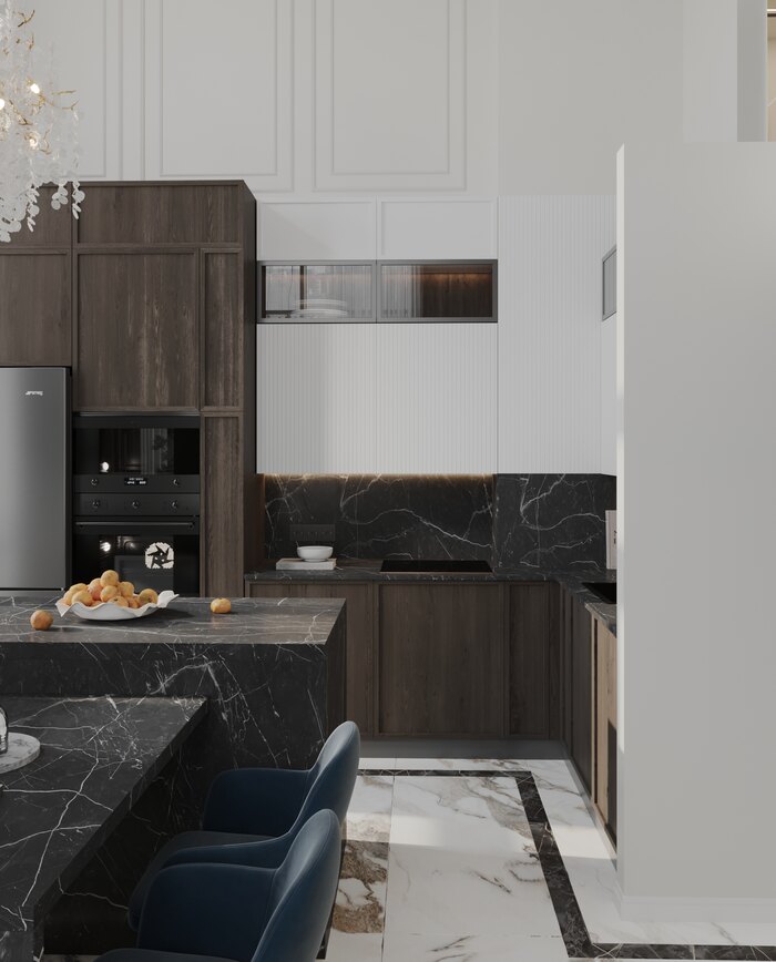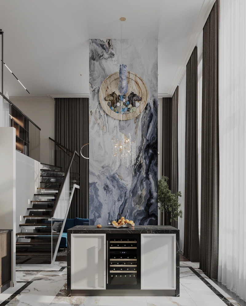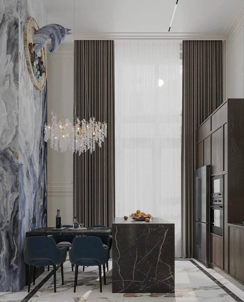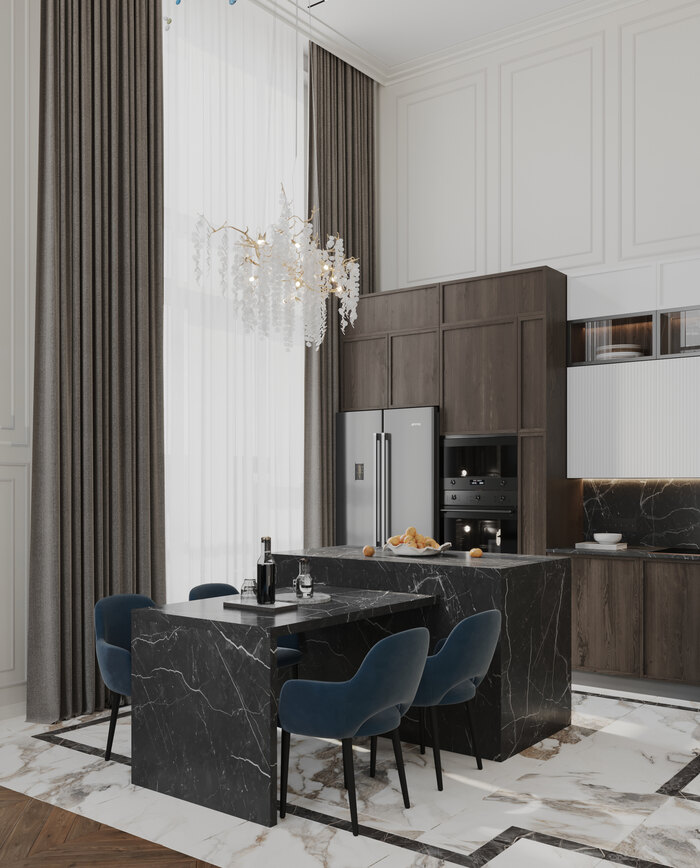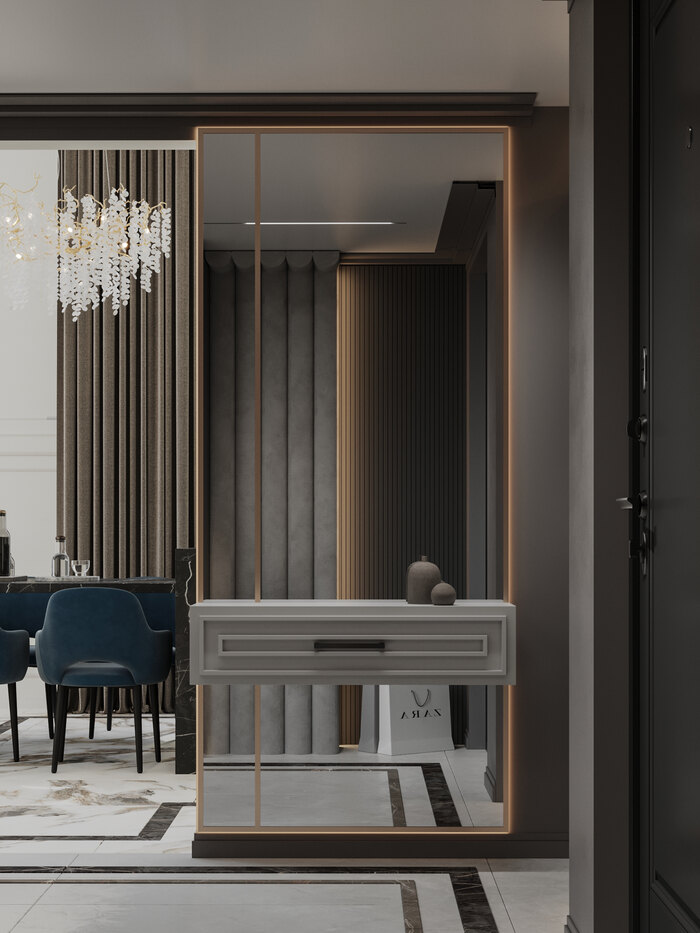 Современный дизайн интерьера квартиры с элементами классического в ЖК "Now" - 75 м2
