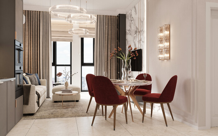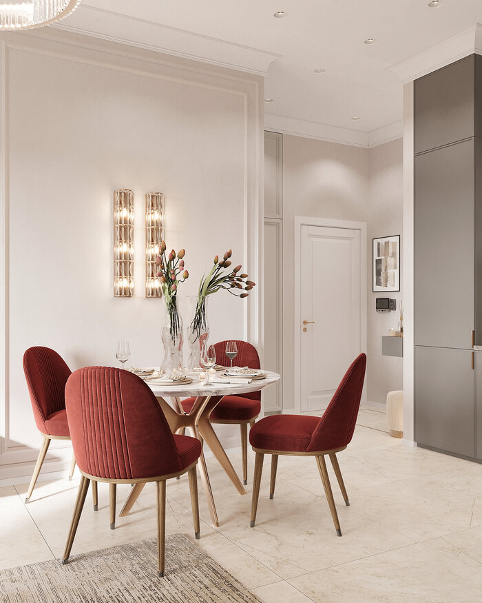 Дизайн интерьера квартиры в ЖК «Neopark» в стиле современная классика с бордовыми акцентами - 58 м²