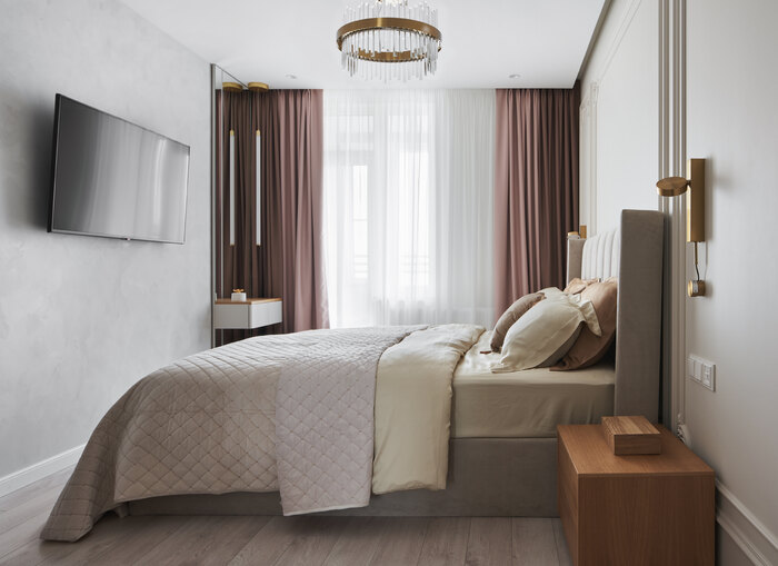 Дизайн интерьера квартиры и ремонт в стиле современная классика с яркими акцентами в ЖК «Life Лесная» - 124 м²