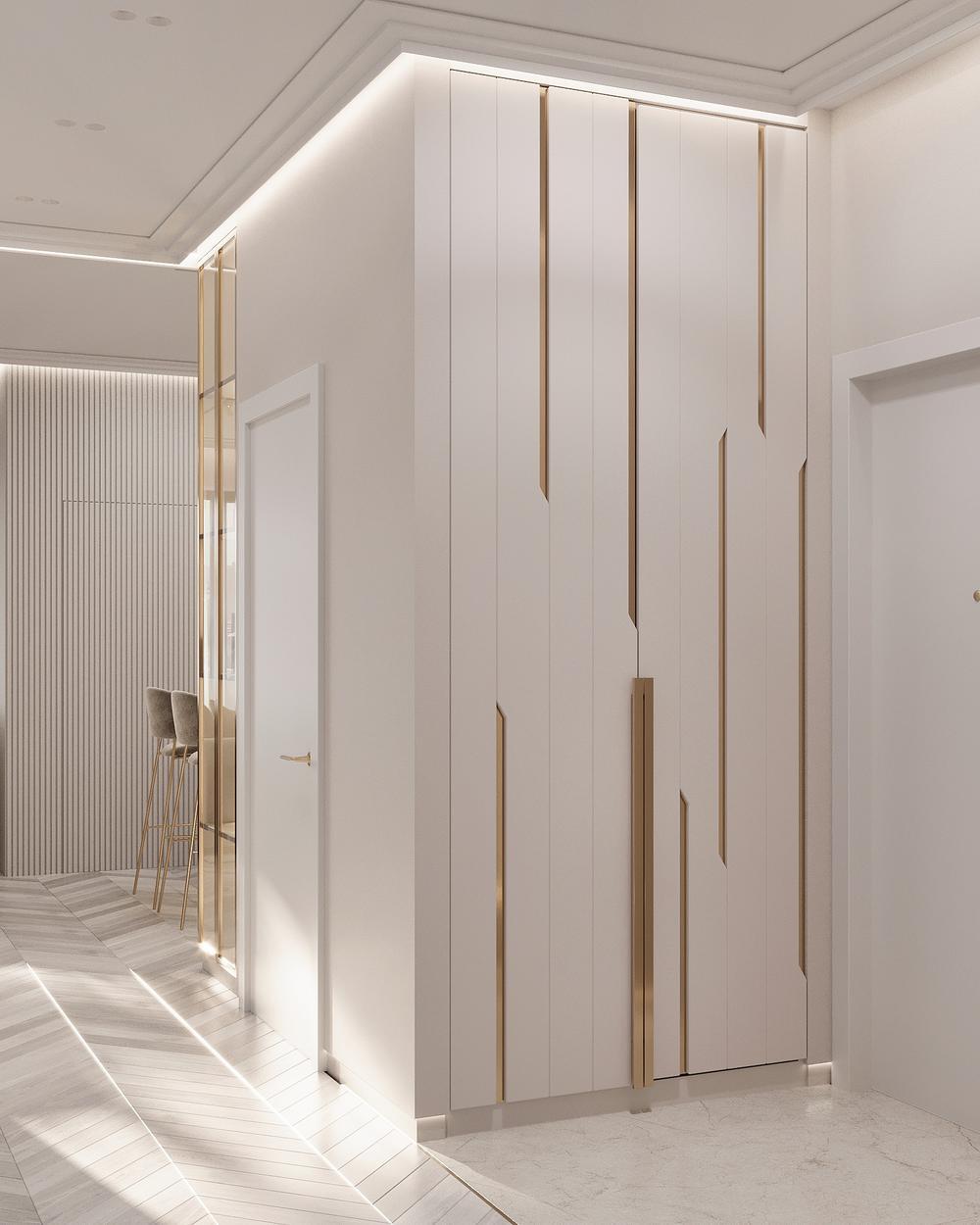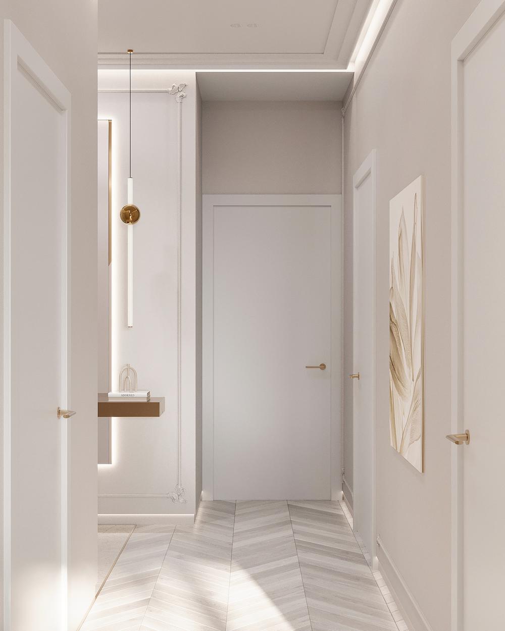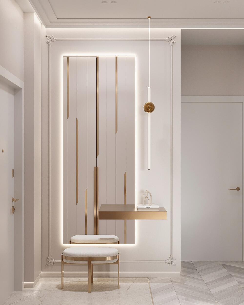 Современная классика с золотыми акцентами в дизайне интерьера квартиры в ЖК "Familia" - 80 м2