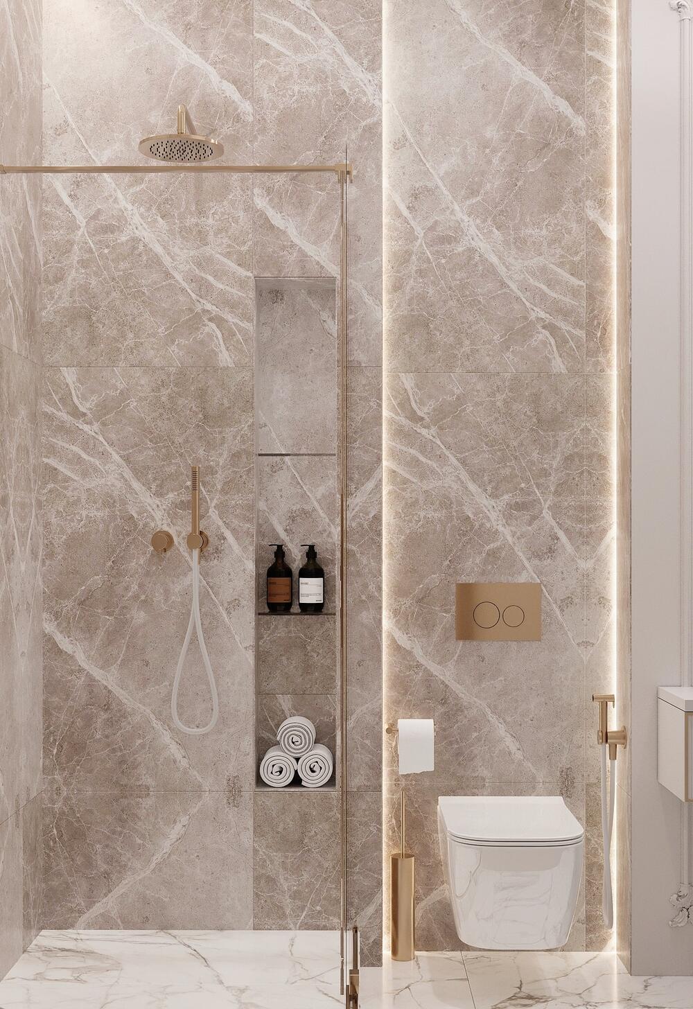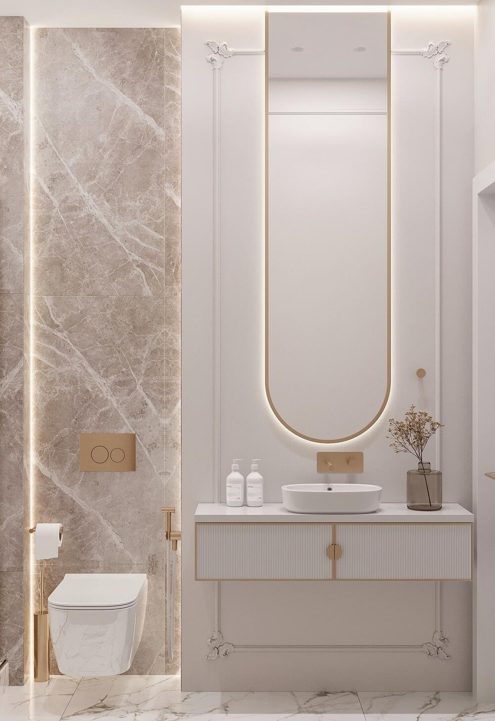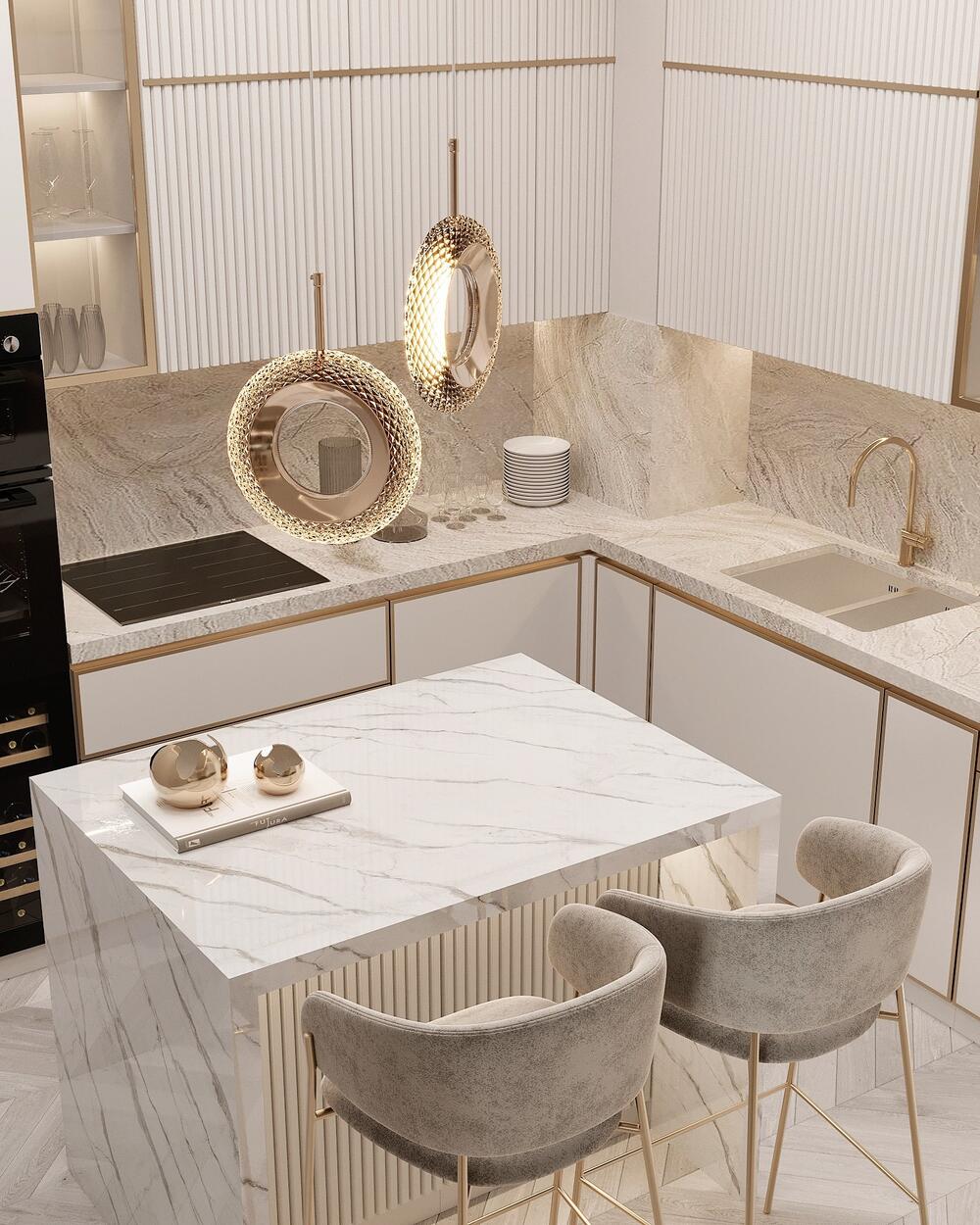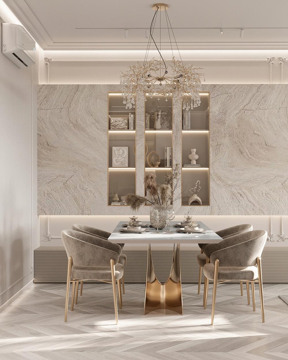 Современная классика с золотыми акцентами в дизайне интерьера квартиры в ЖК "Familia" - 80 м2