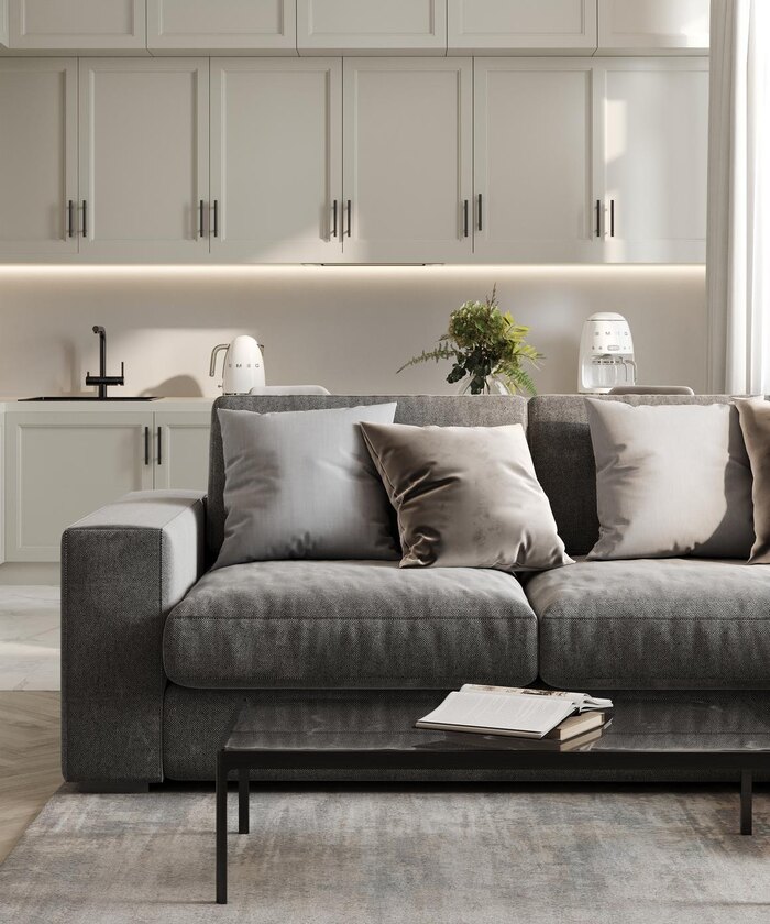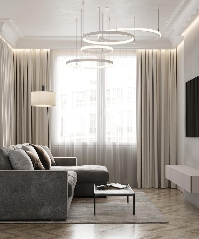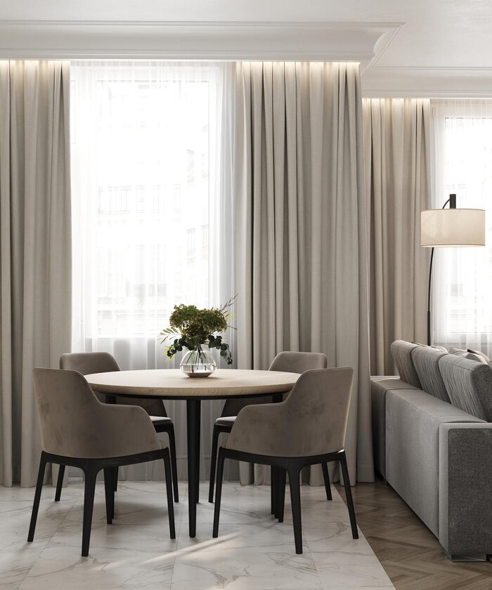 Современная классика в дизайне интерьера квартиры в серых тонах в ЖК "Галактика" - 86 м2