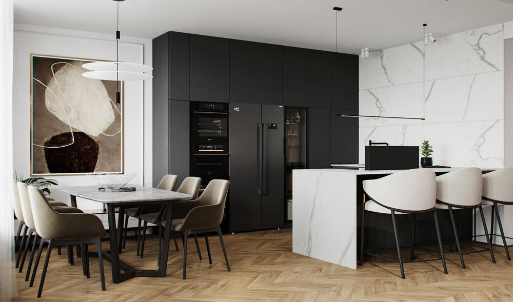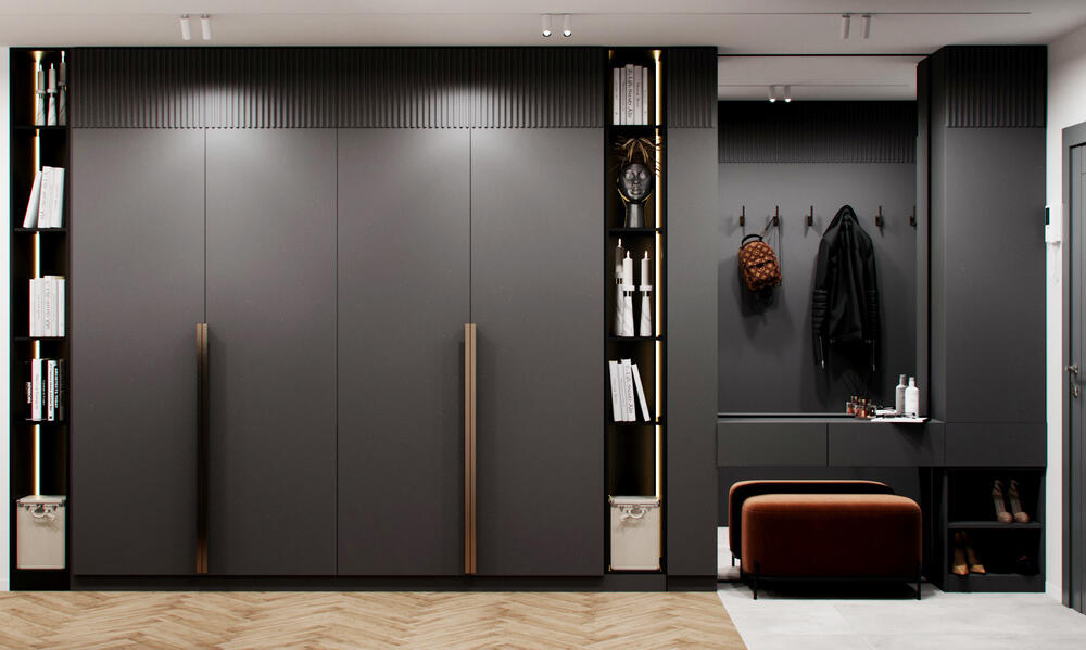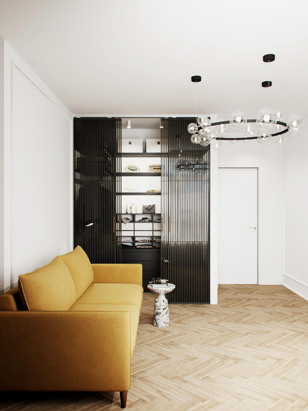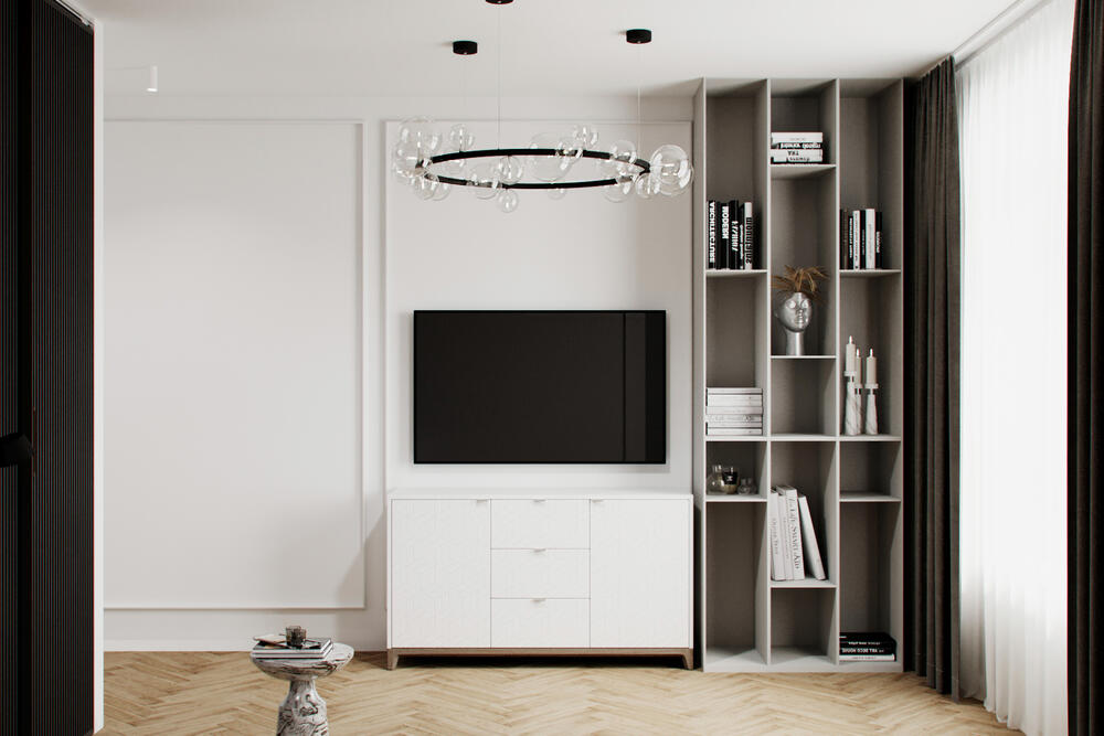 Cовременная квартира, дизайн интерьера в светло-темных тонах в ЖК "Георг Ландрин" — 120 м2