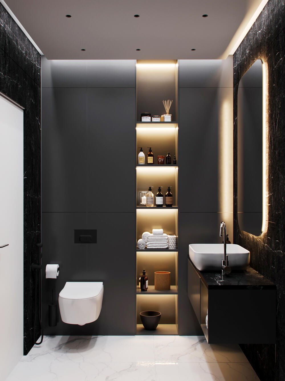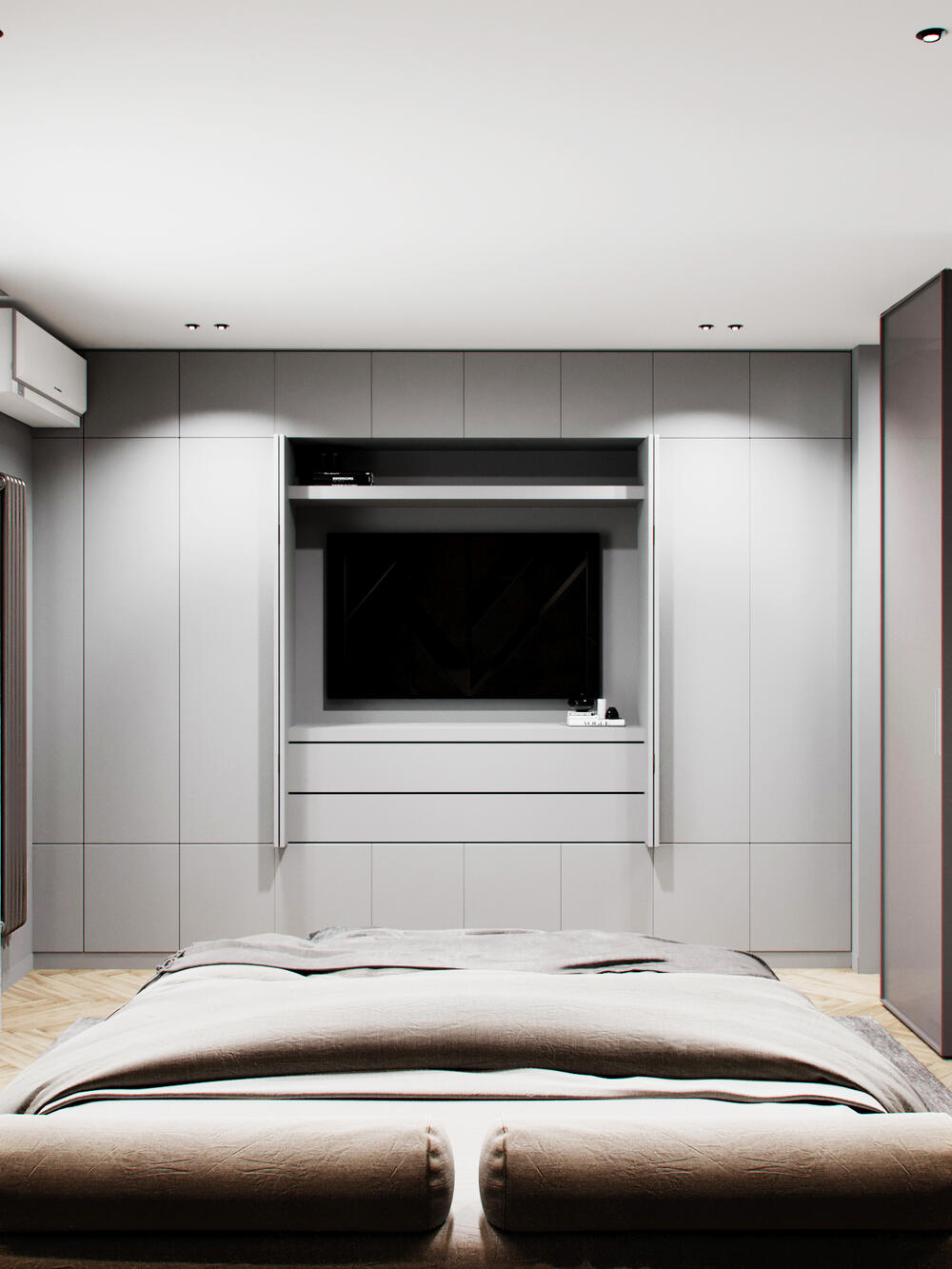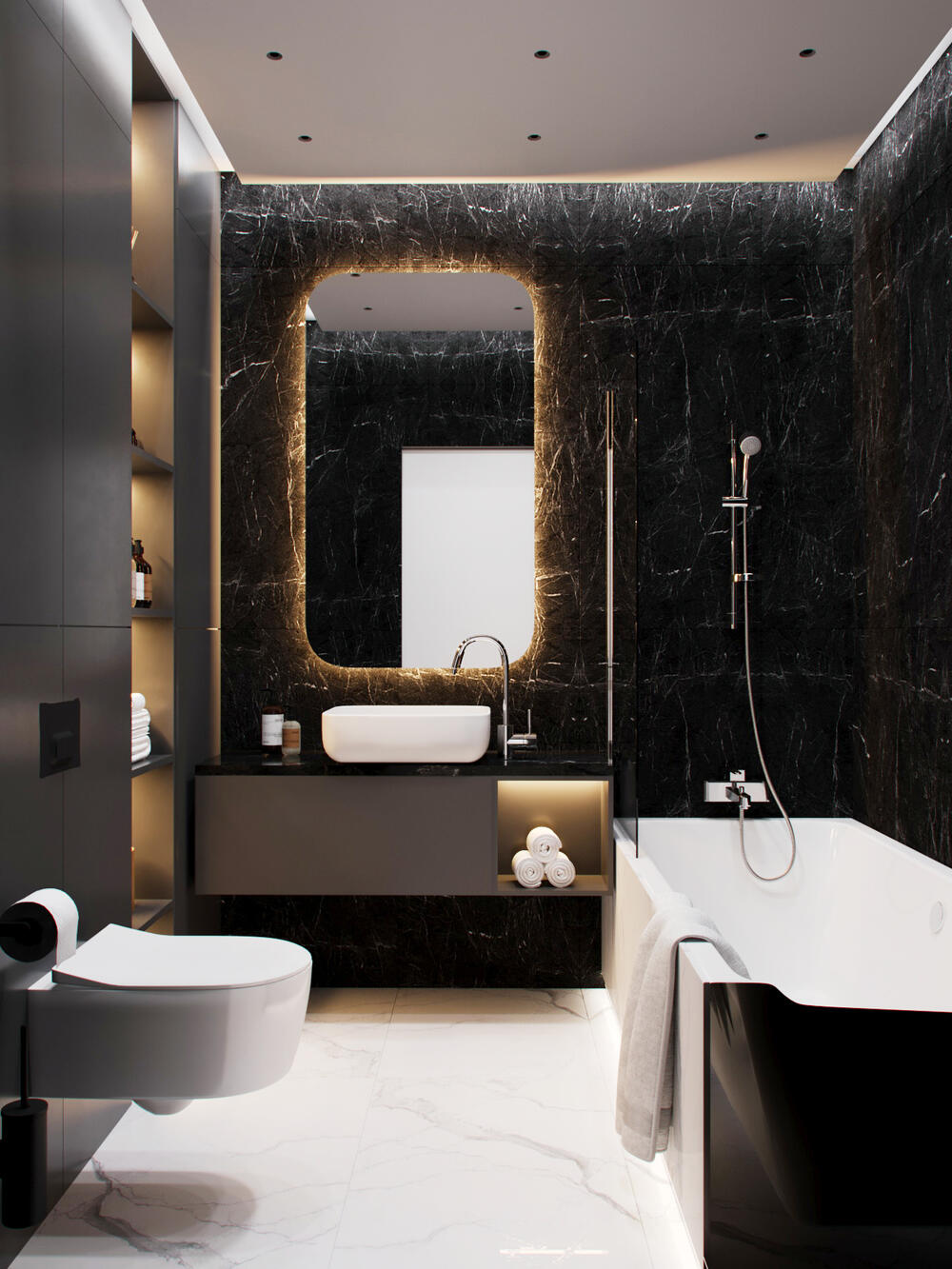 Cовременная квартира, дизайн интерьера в светло-темных тонах в ЖК "Георг Ландрин" — 120 м2