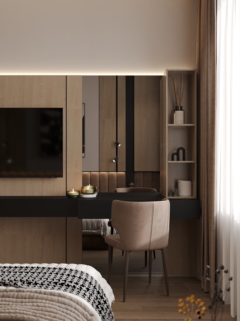 Посмотреть проектCовременный дизайн интерьера с элементами экостиля и джапанди в ЖК "Symphony" - 93 м2