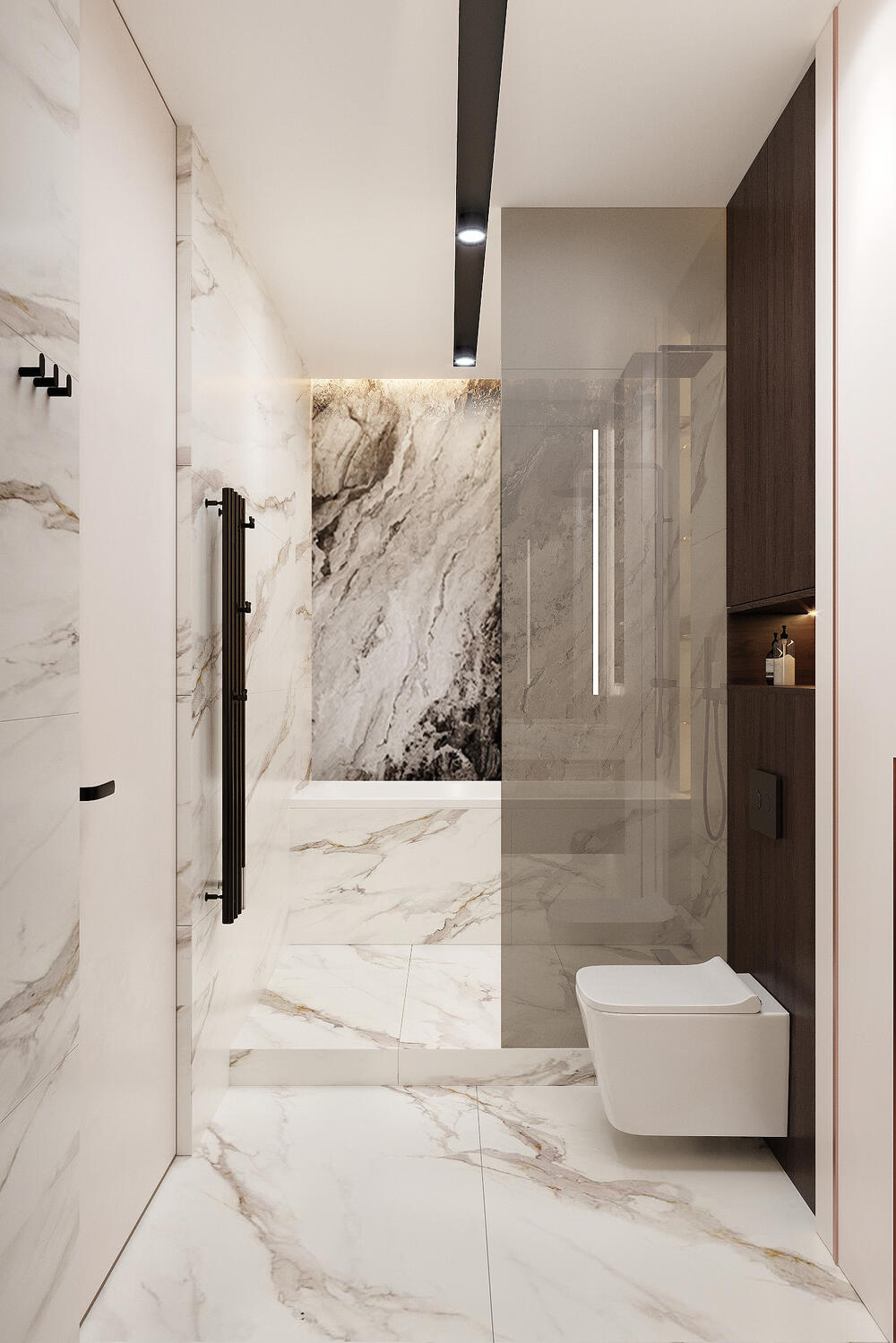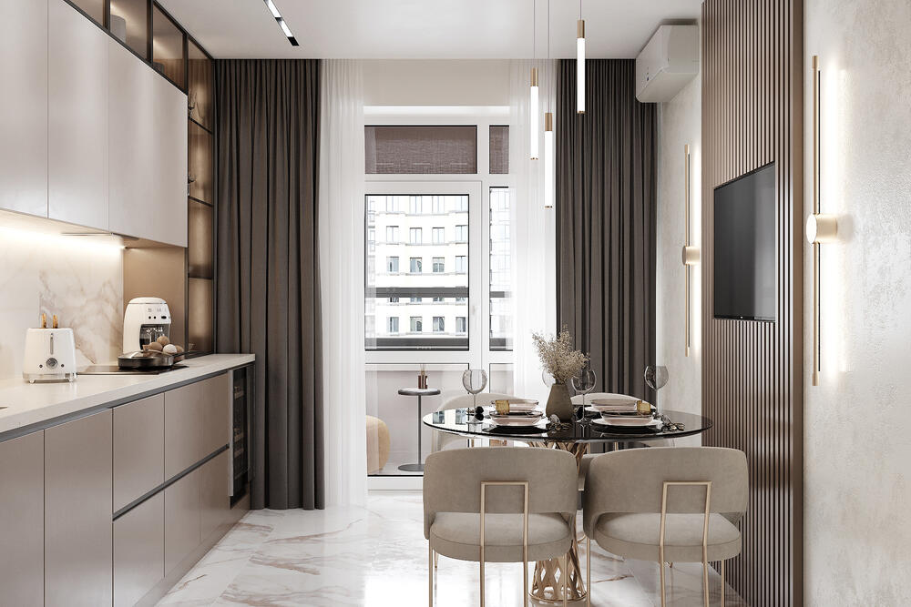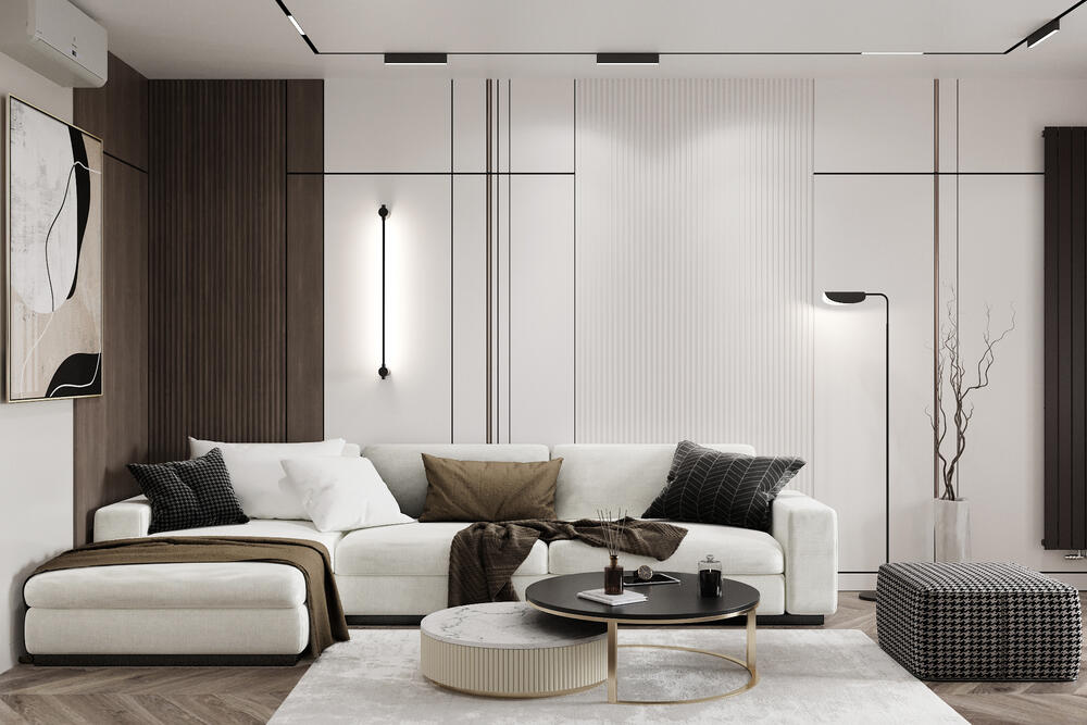 Современный дизайн проект интерьера с элементами минимализма в ЖК "Upoint на Пискаревском" - 79 м2