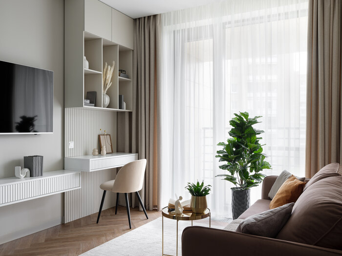 - В гостиной разместить рабочее место