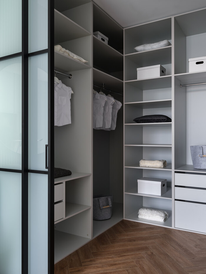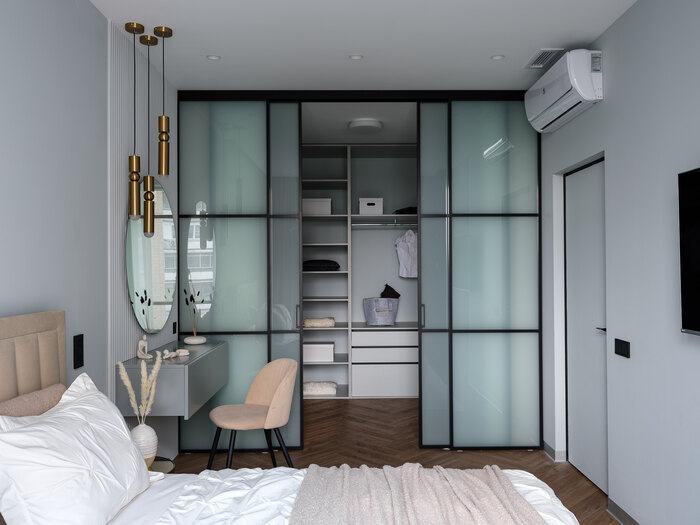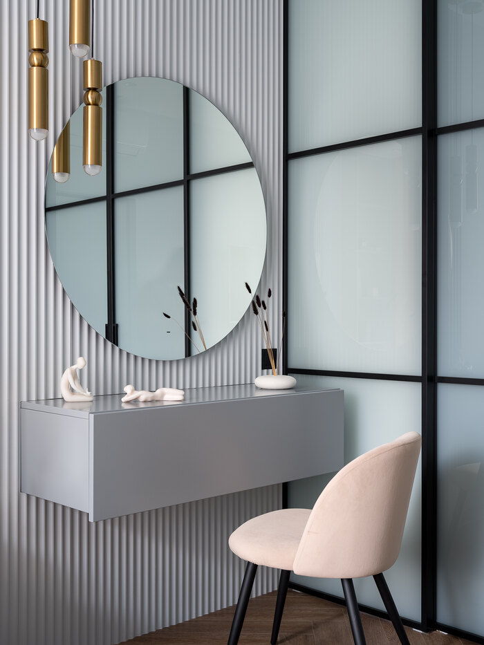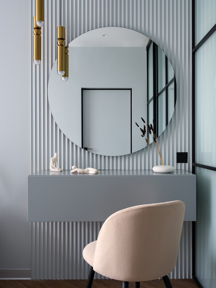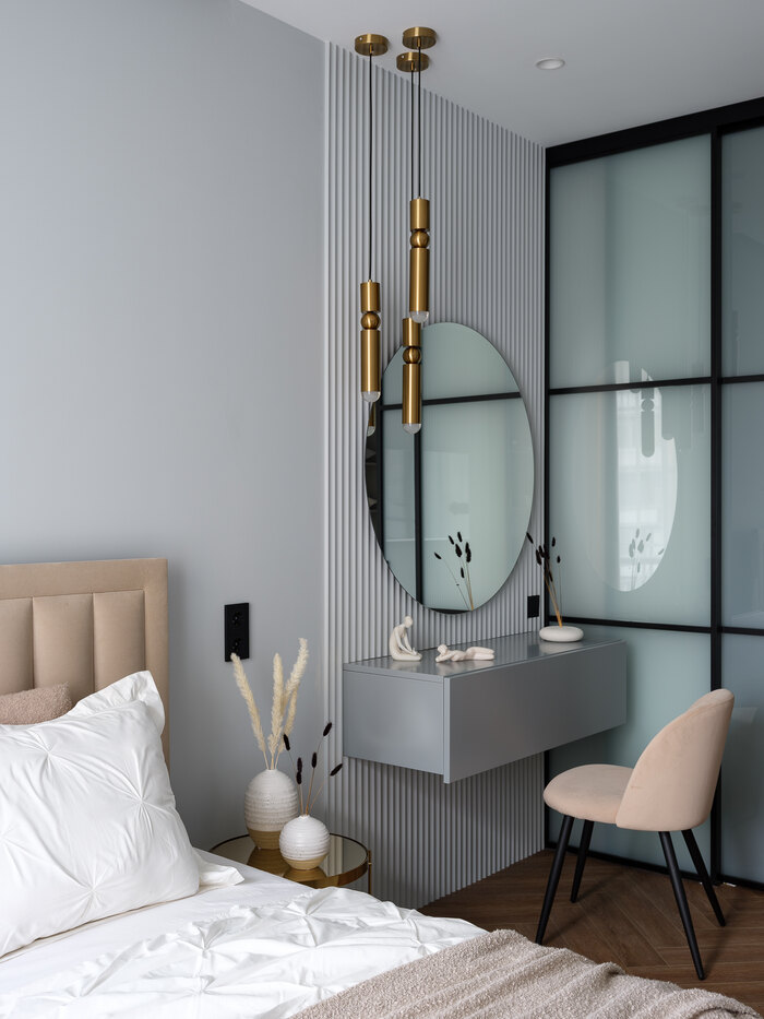 - Организовать спальню с туалетным столиком и большой гардеробной