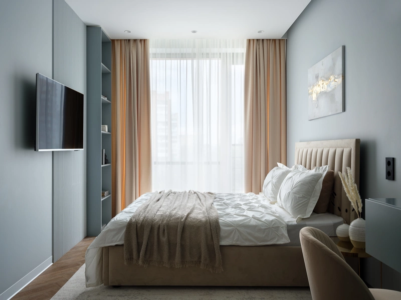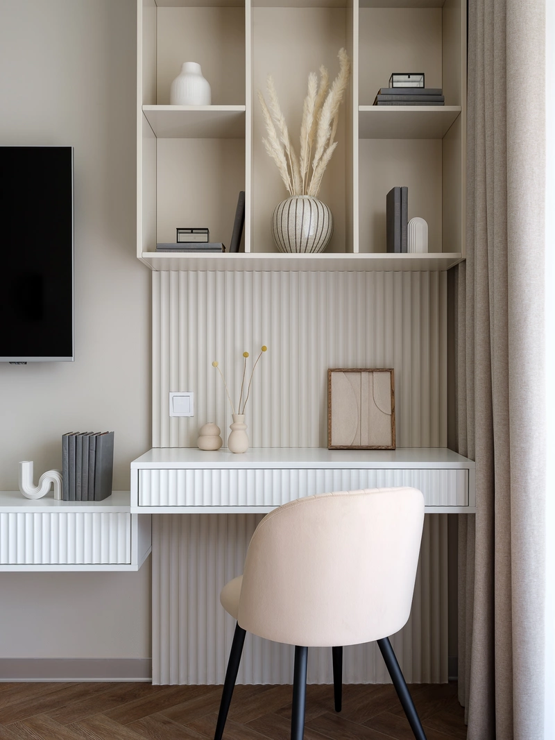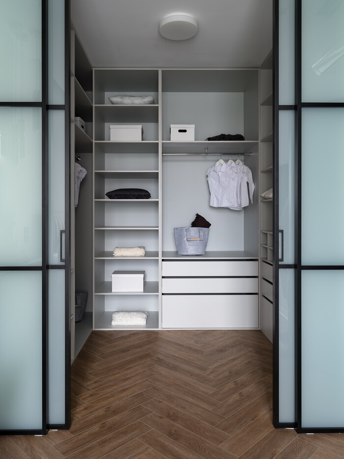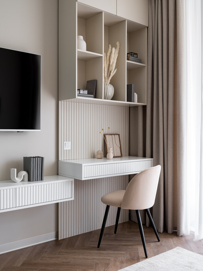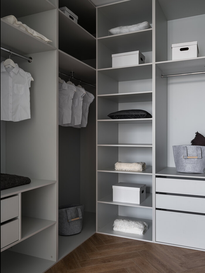 - Организовать спальню с туалетным столиком и большой гардеробной