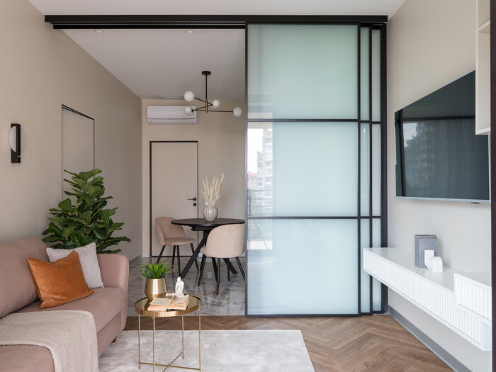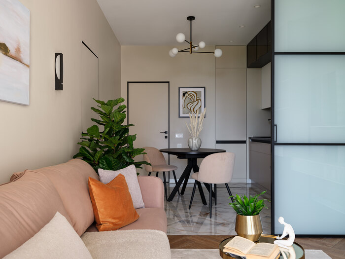 Современный дизайн интерьера квартиры с яркими акцентами в ЖК "Hill 8" - 58 м2