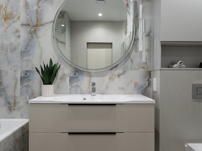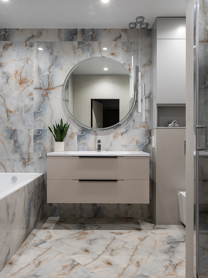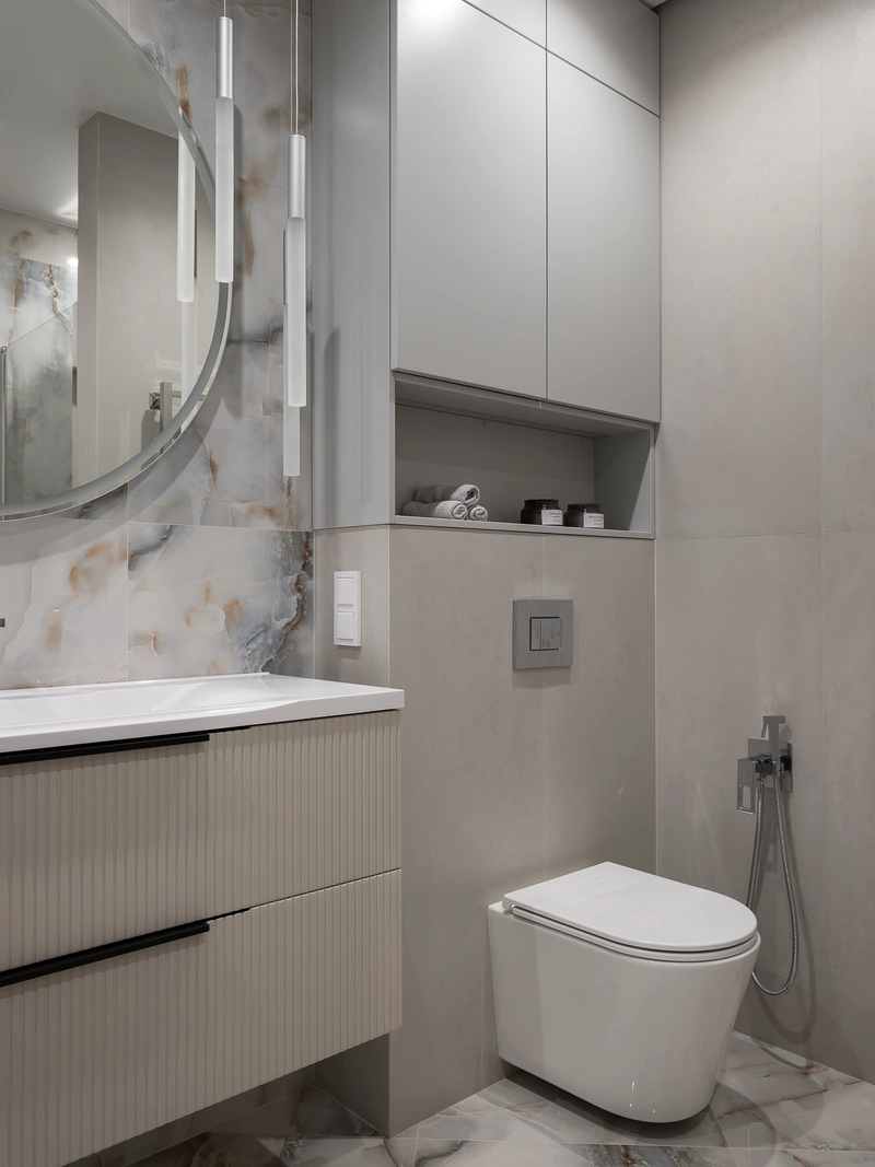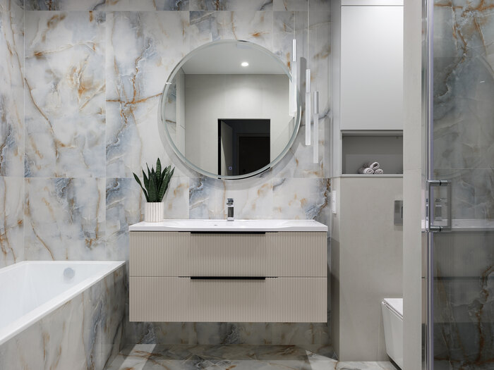 - В ванной предусмотреть ванную, душевую, унитаз с инсталляцией и закрытый шкаф для хранения гигиенических принадлежностей.