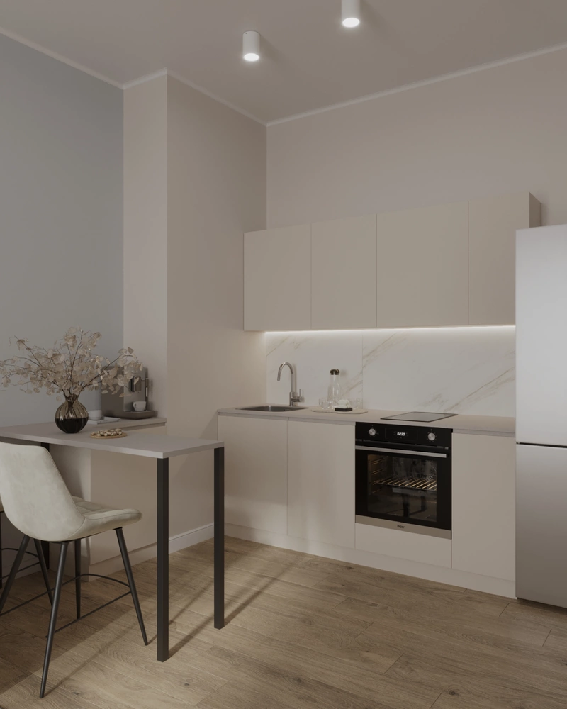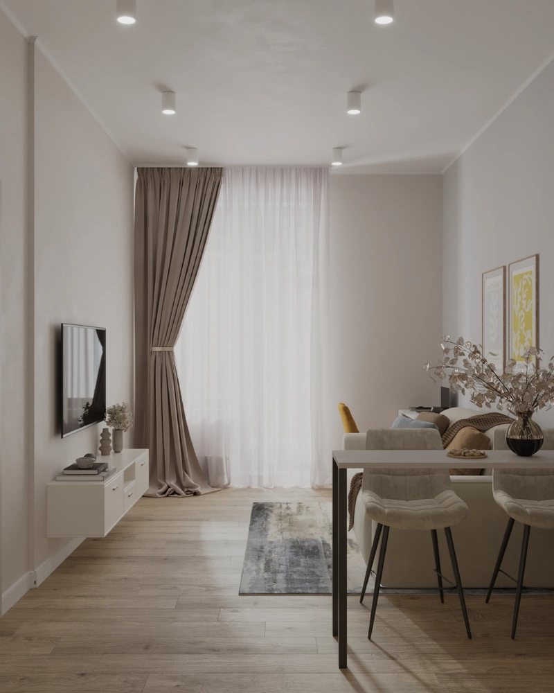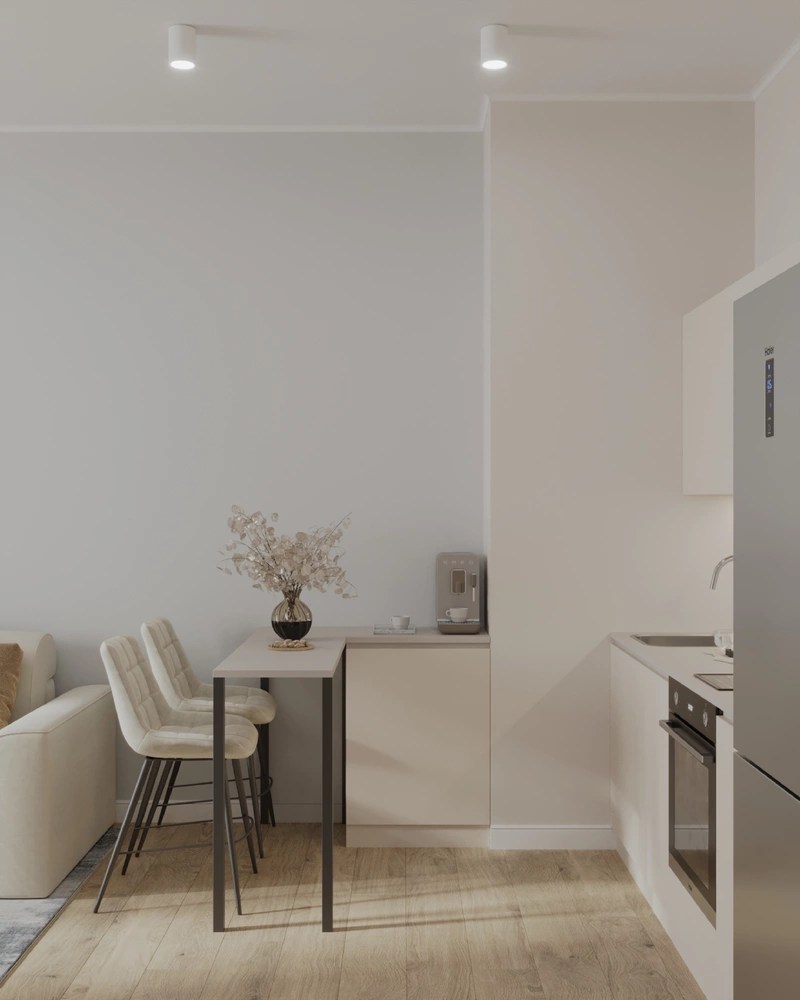 Современный дизайн проекты квартиры в стиле минимализм с элементами сканди в ЖК "Pulse Premier"
