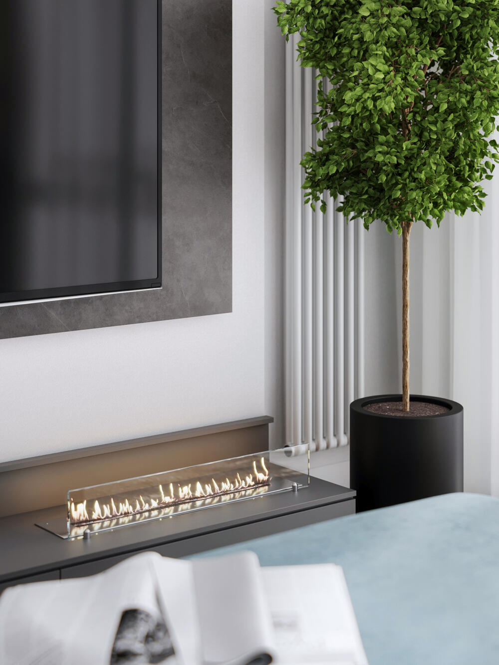Cовременный минимализм с яркими акцентами в дизайне интерьера квартиры в ЖК «Кремлевские звезды» — 87 м2