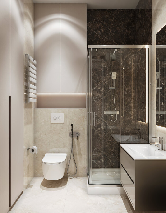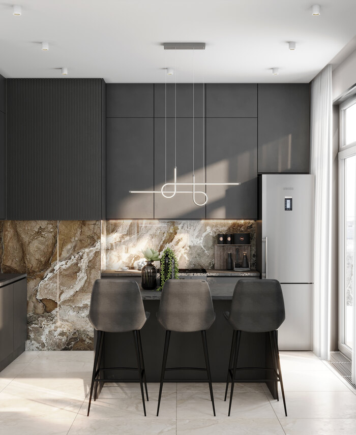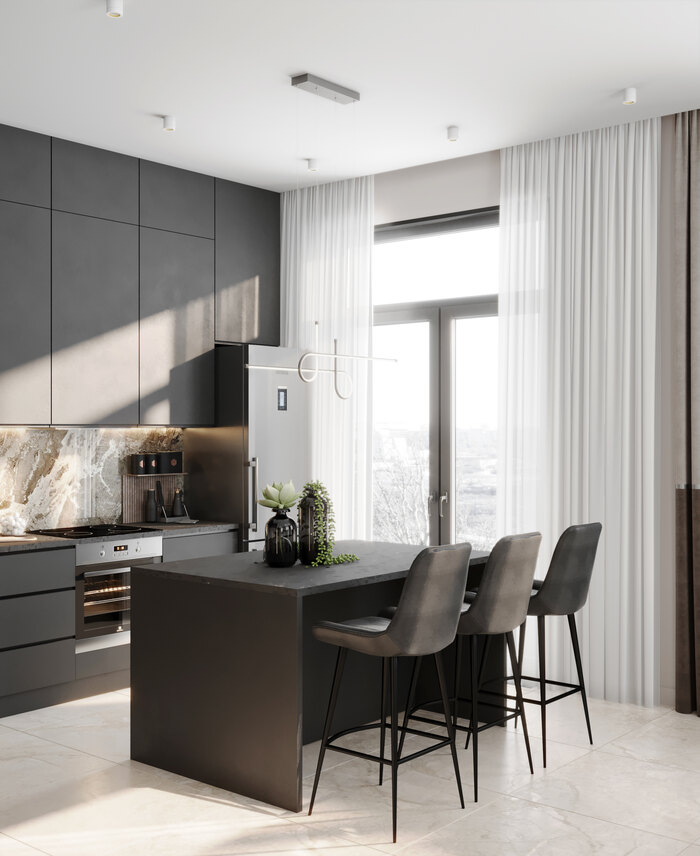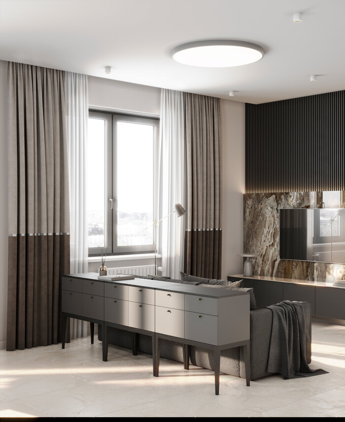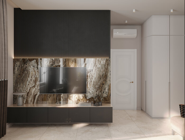 Современный минимализм в дизайне интерьера квартиры в ЖК "Ленинграdка 58" - 85 м2
