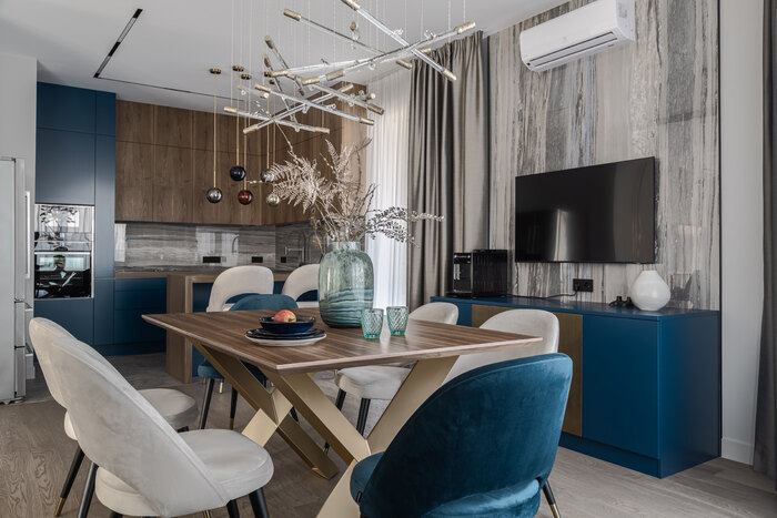 - Добавить глубокий синий и изумрудный цвета в интерьер