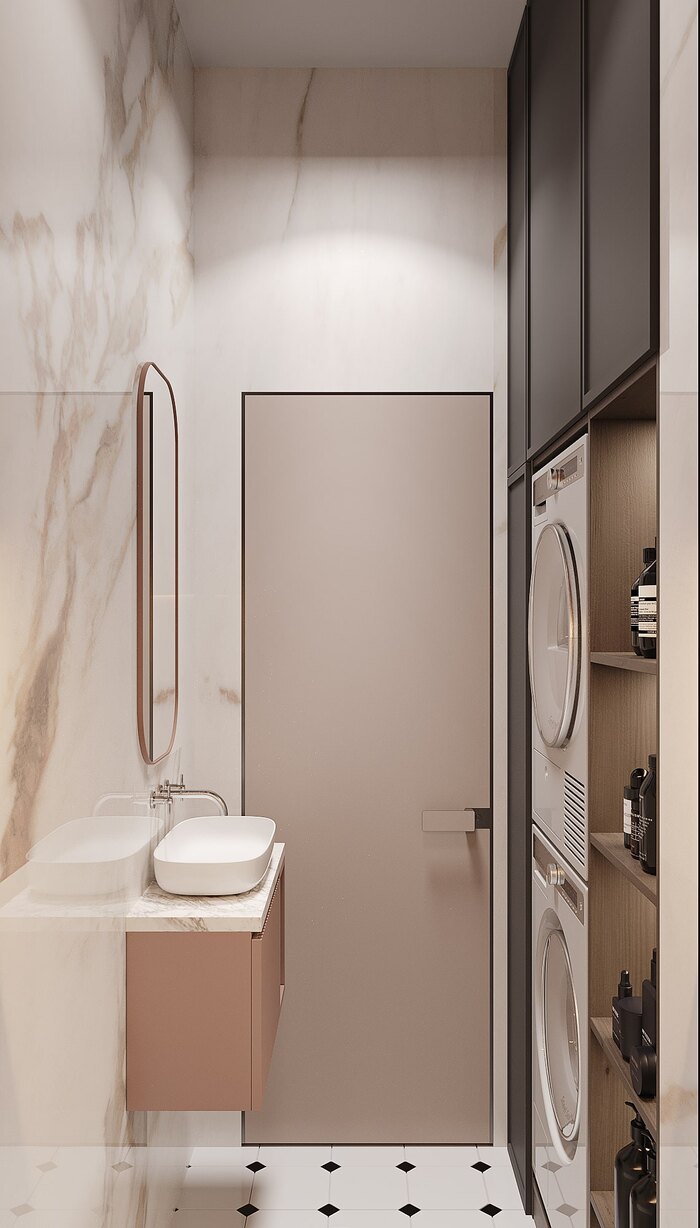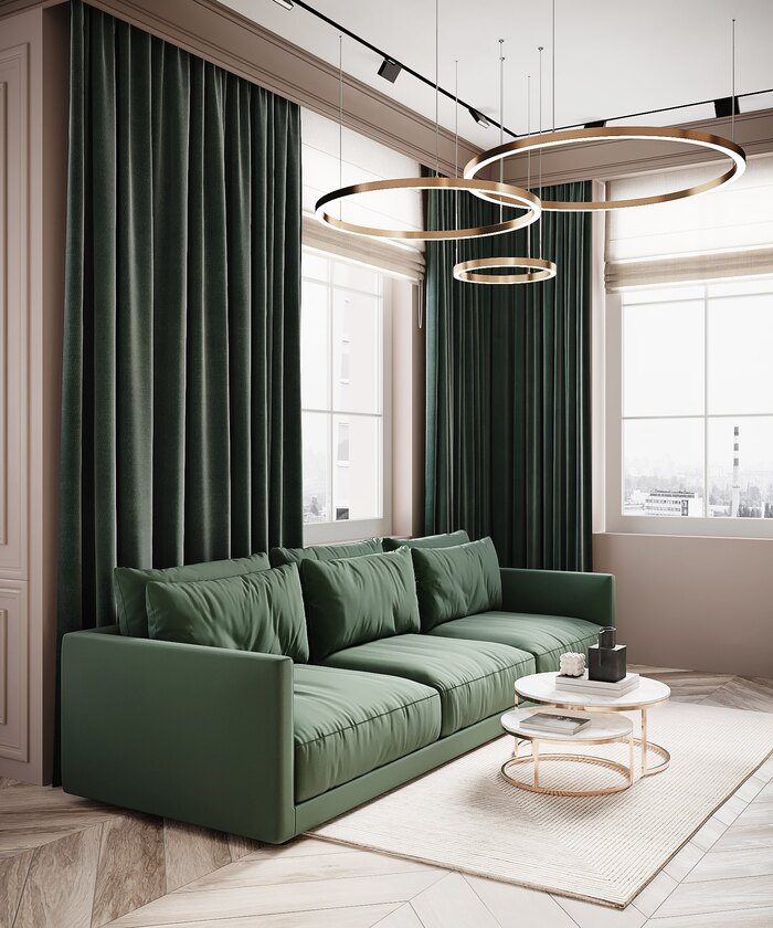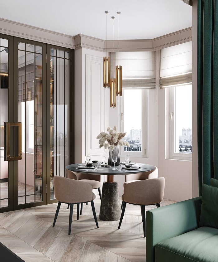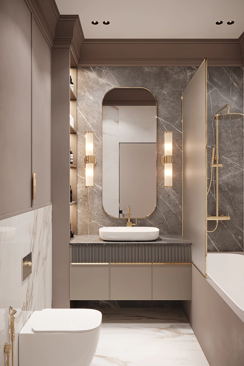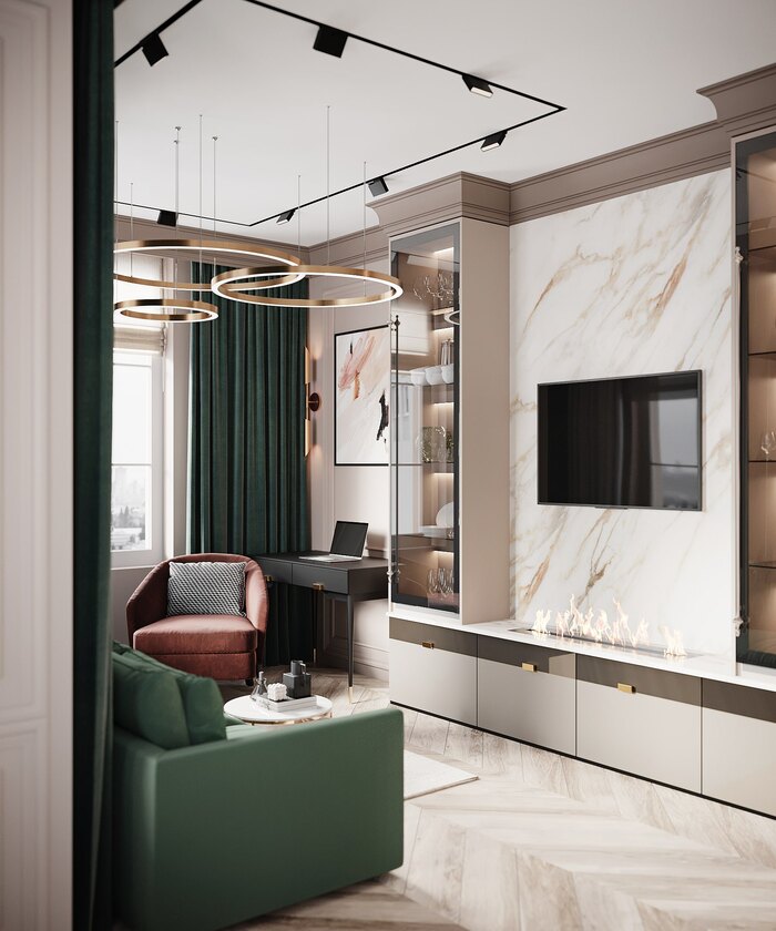 Современный дизайн интерьера квартиры с элементами ар-деко в ЖК Артхаус (Art House) — 70 м2