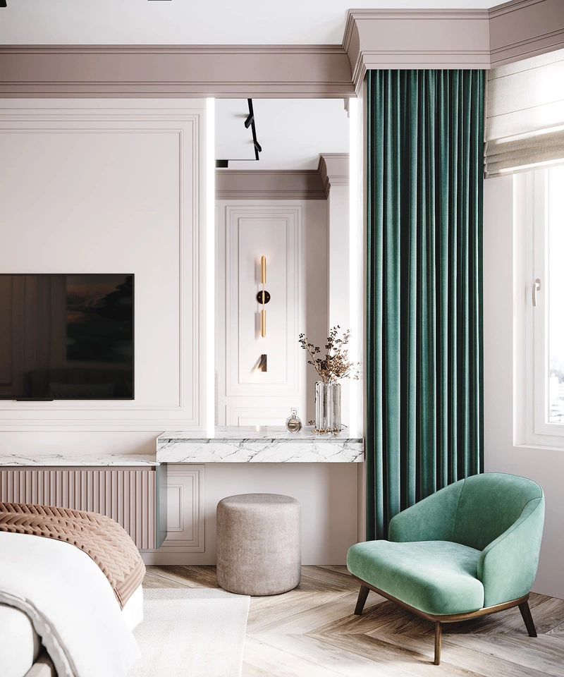 Посмотреть проектДизайн интерьера квартиры в стиле современная классика с элементами дерева 112 м²