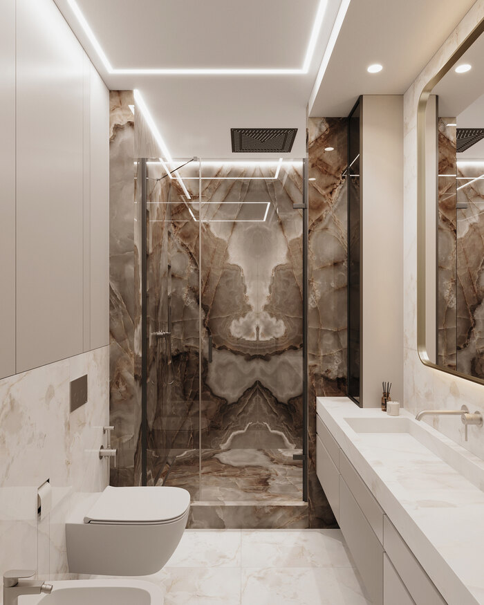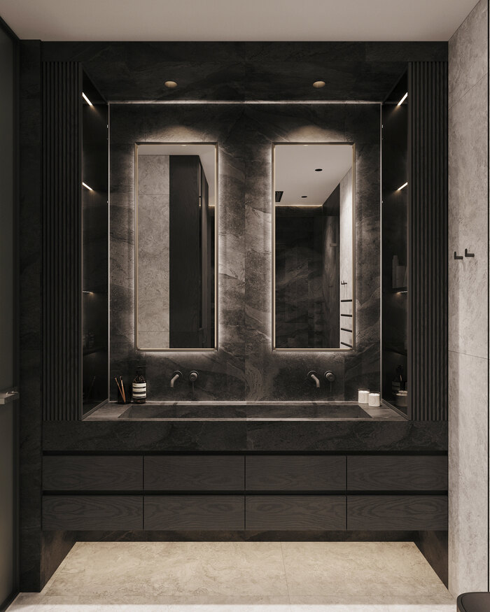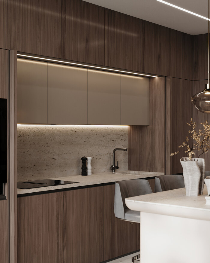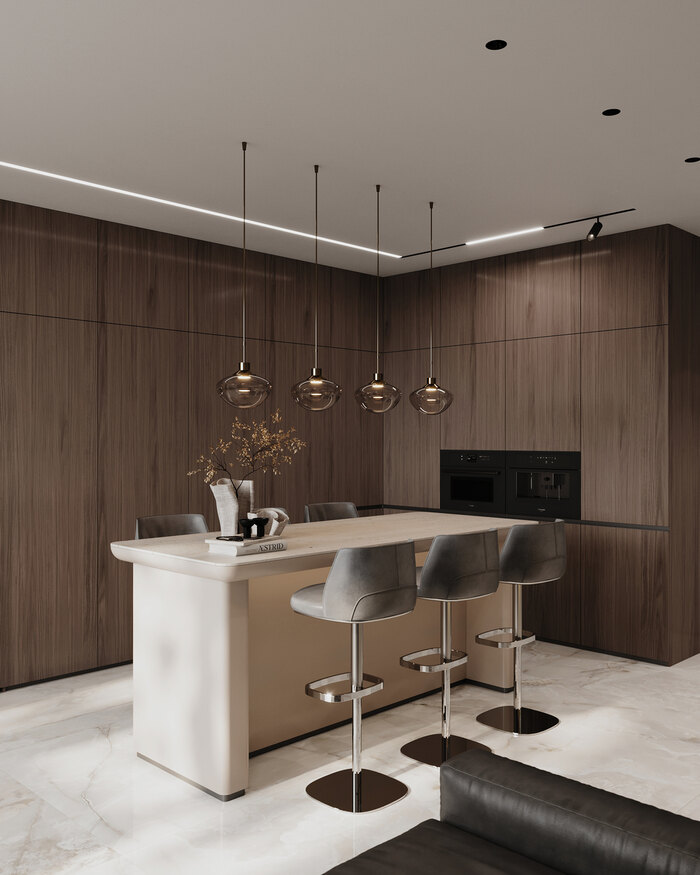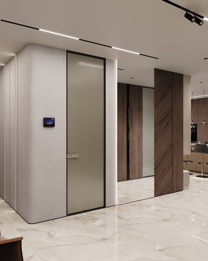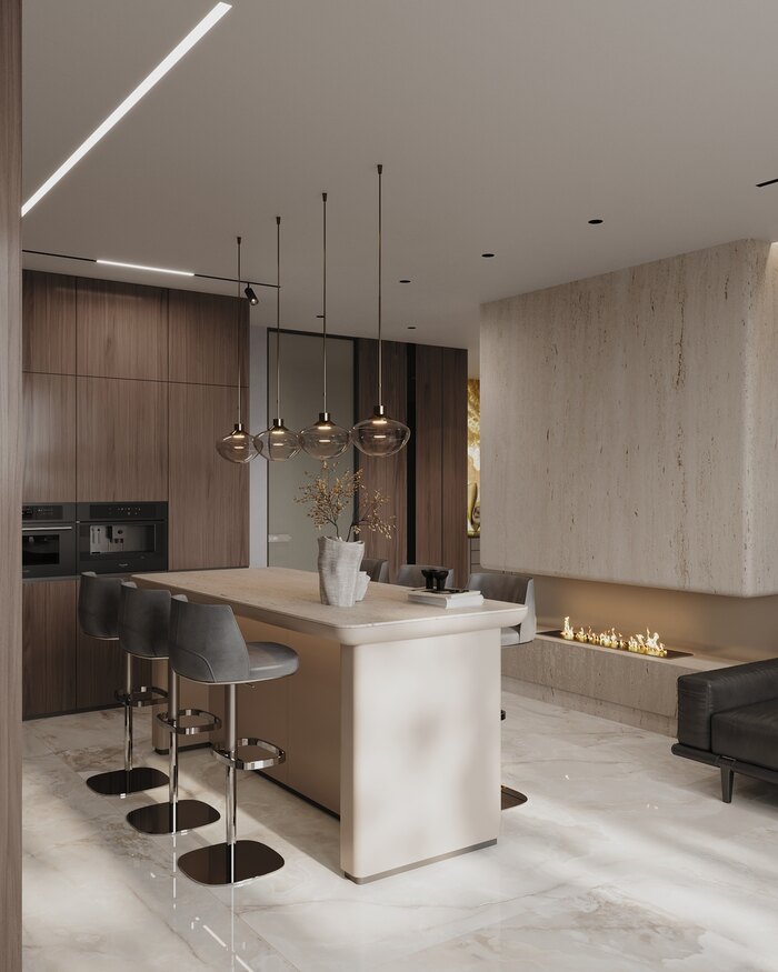 Посмотреть проектДизайн интерьера квартиры в ЖК «Lotos club» в современном стиле с натуральным камнем и деревом — 175 м²