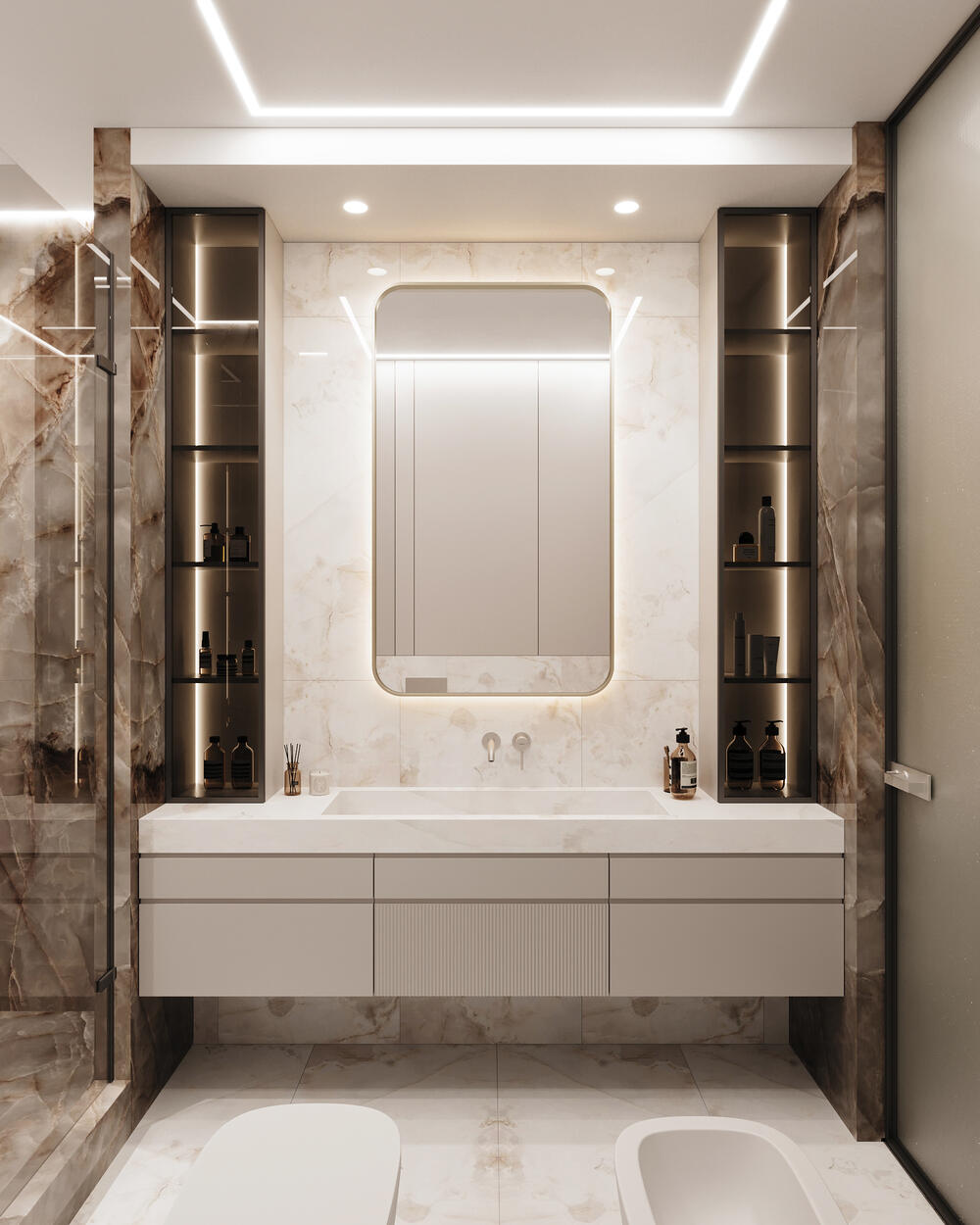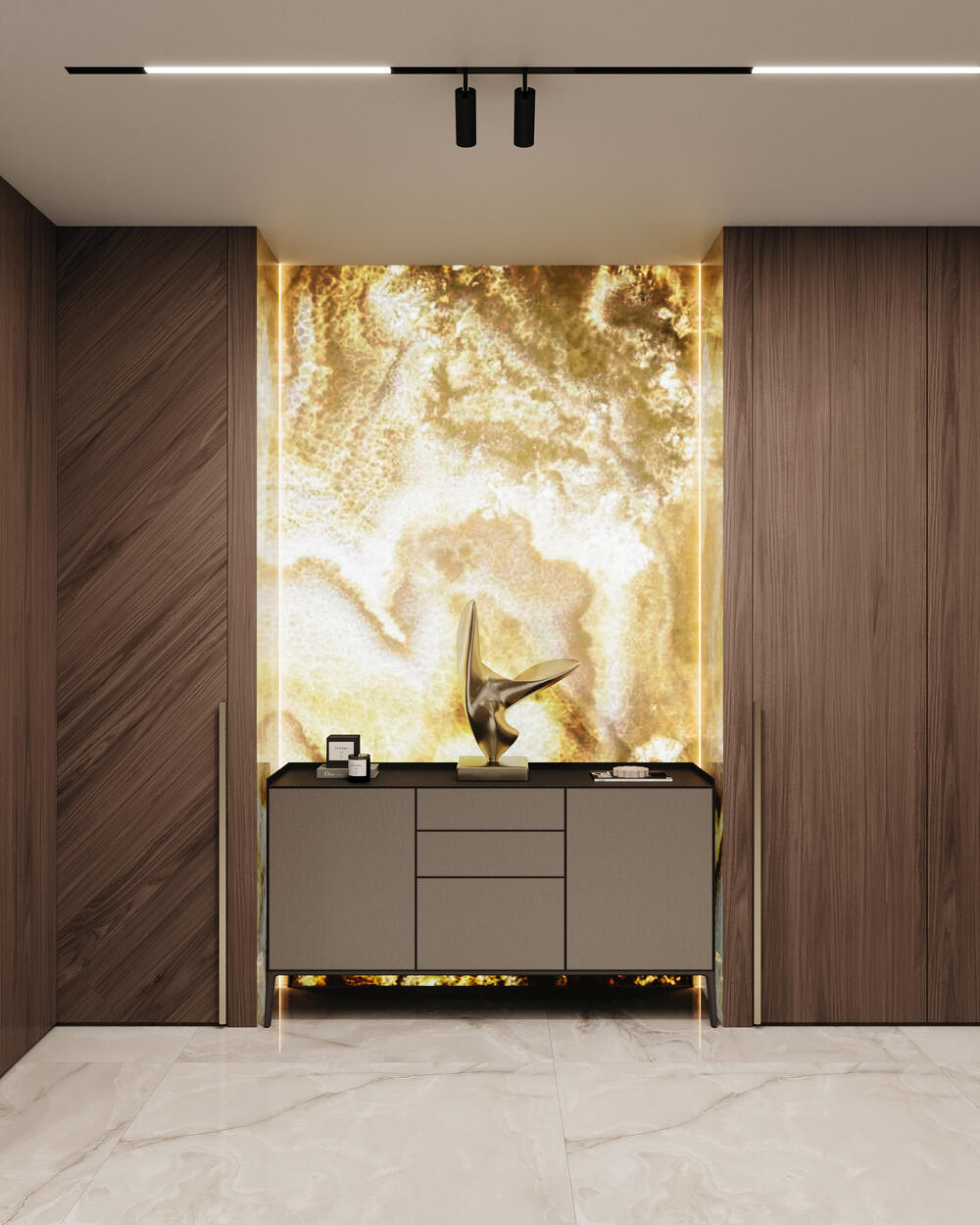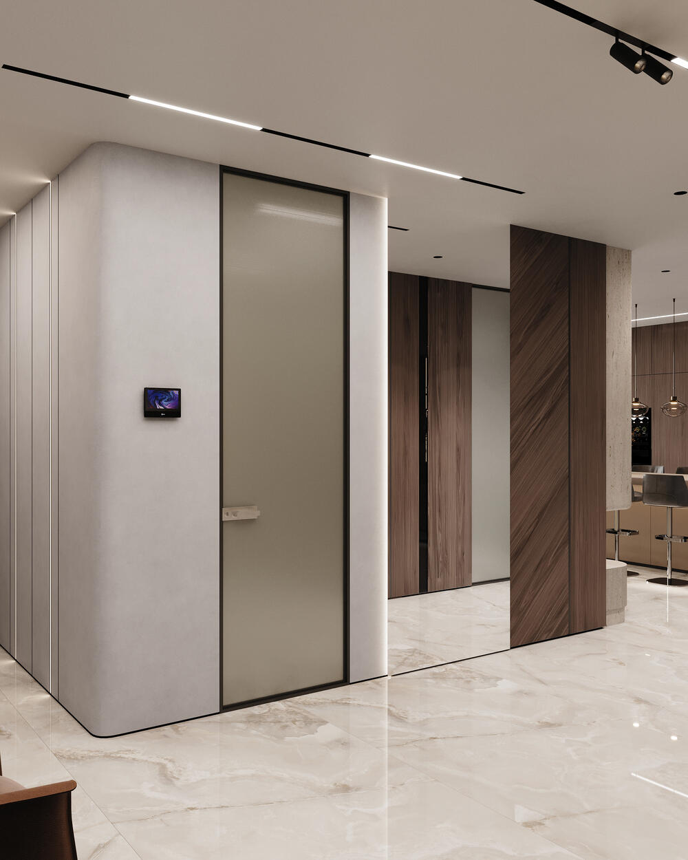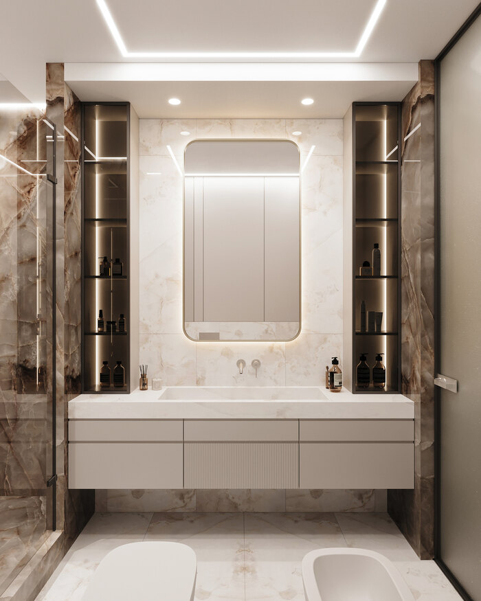 Посмотреть проектДизайн интерьера квартиры в ЖК «Lotos club» в современном стиле с натуральным камнем и деревом — 175 м²