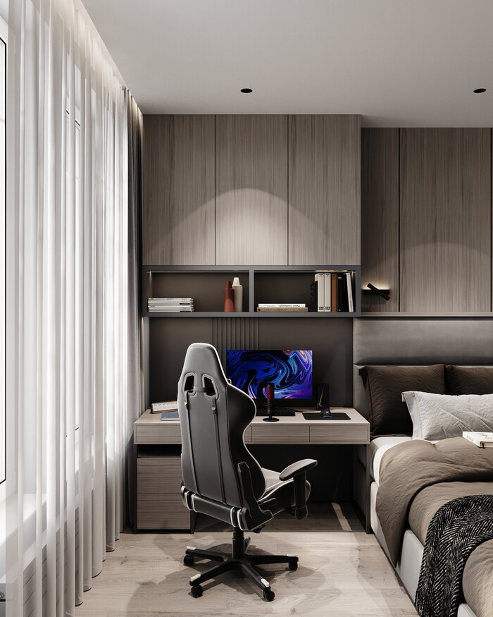Современный дизайн интерьера с элементами минимализма для большой семьи в ЖК "Миръ" - 142 м2