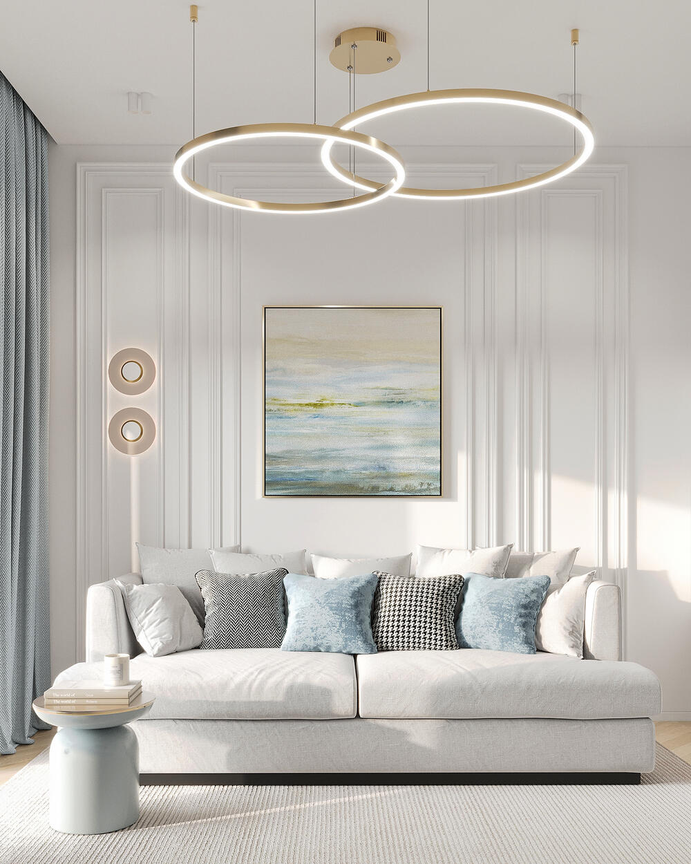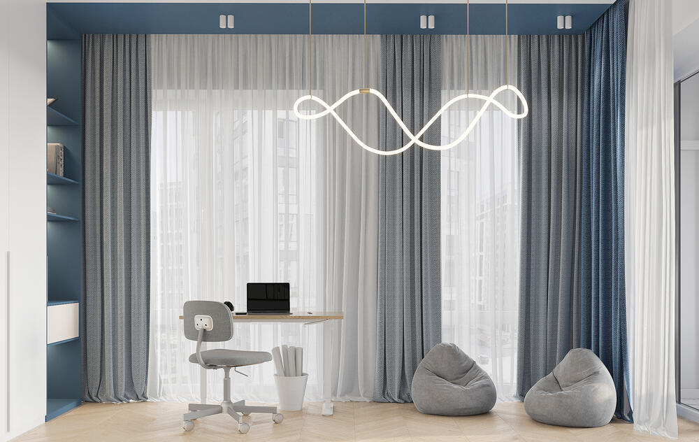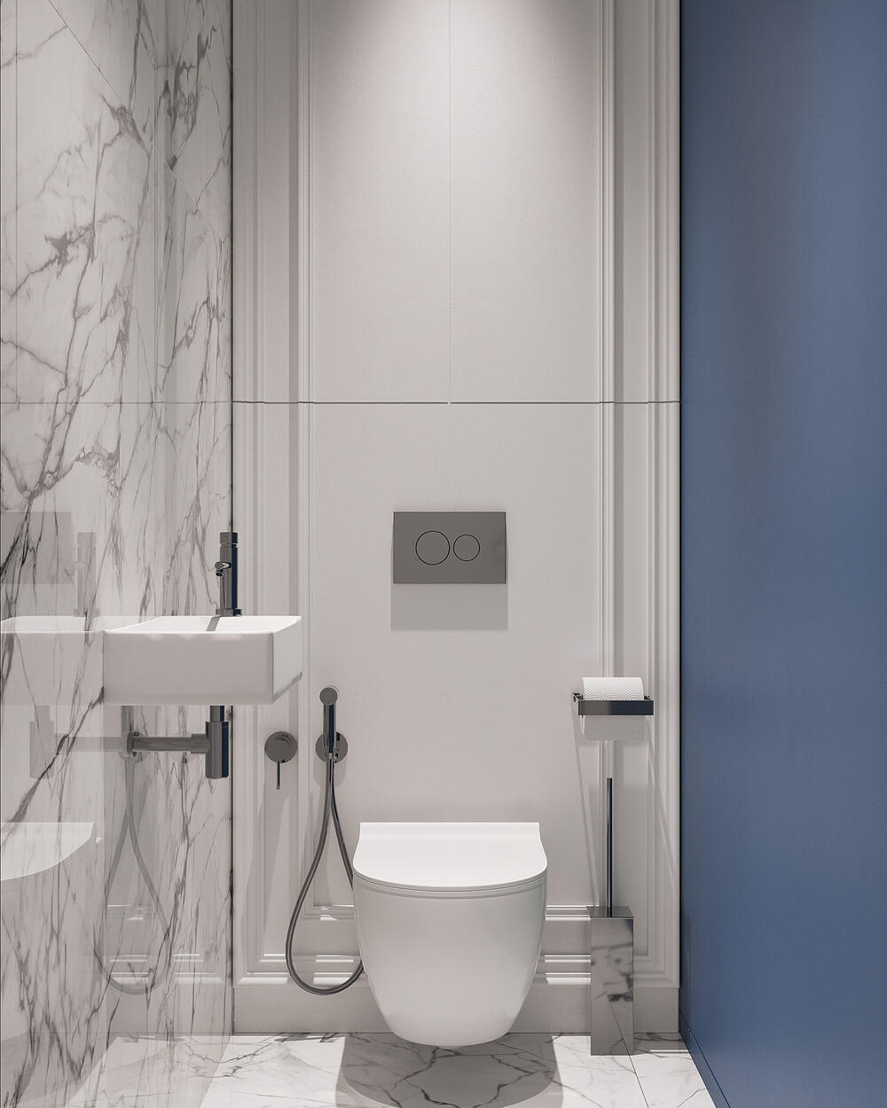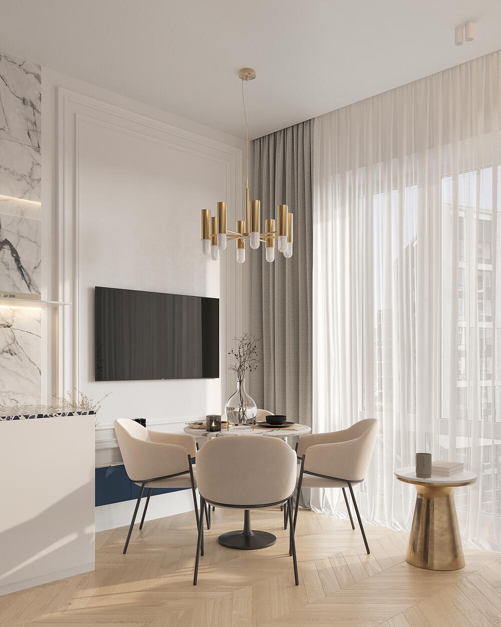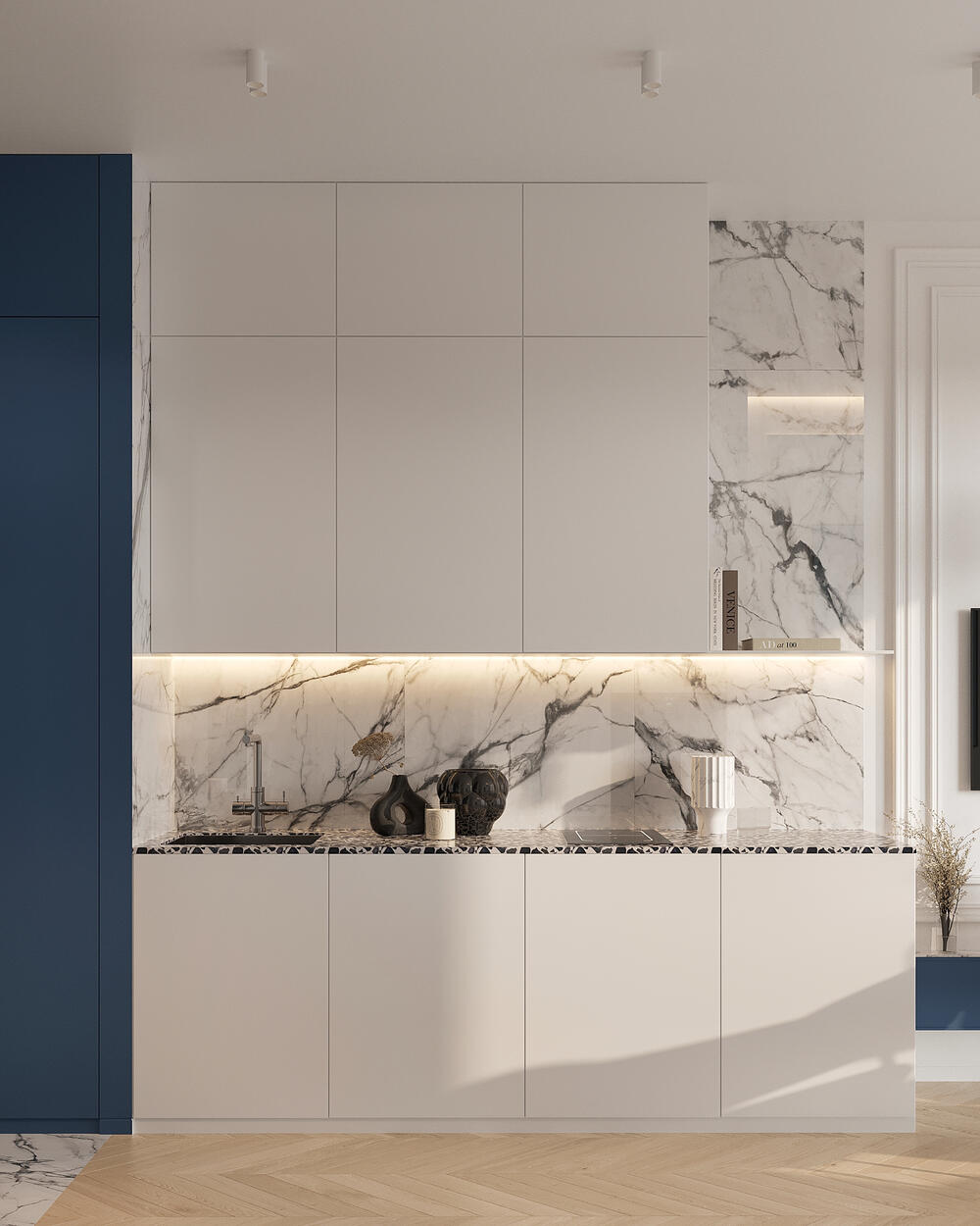 Современный дизайн интерьера квартиры с синими акцентами в ЖК «Now» — 56 м²