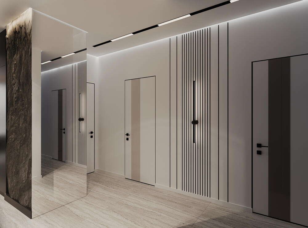3D-панели и мебельные панели ЛДСП — для оформления акцентных стен и встроенной мебели. Они добавляют глубину и ритм интерьеру.