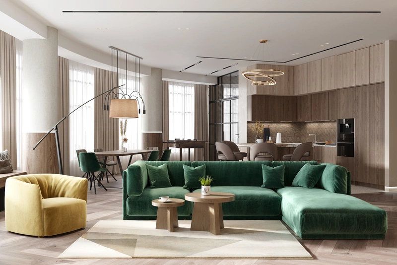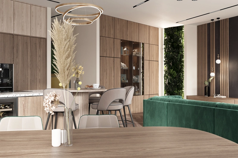 Современный дизайн интерьера для большой семьи в экостиле — 247 м2