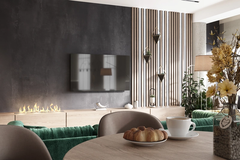 - Сделать современный интерьер с растительными мотивами и элементами эко-стиля