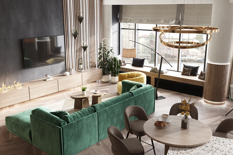 - Подчеркнуть панорамные окна в гостиной
