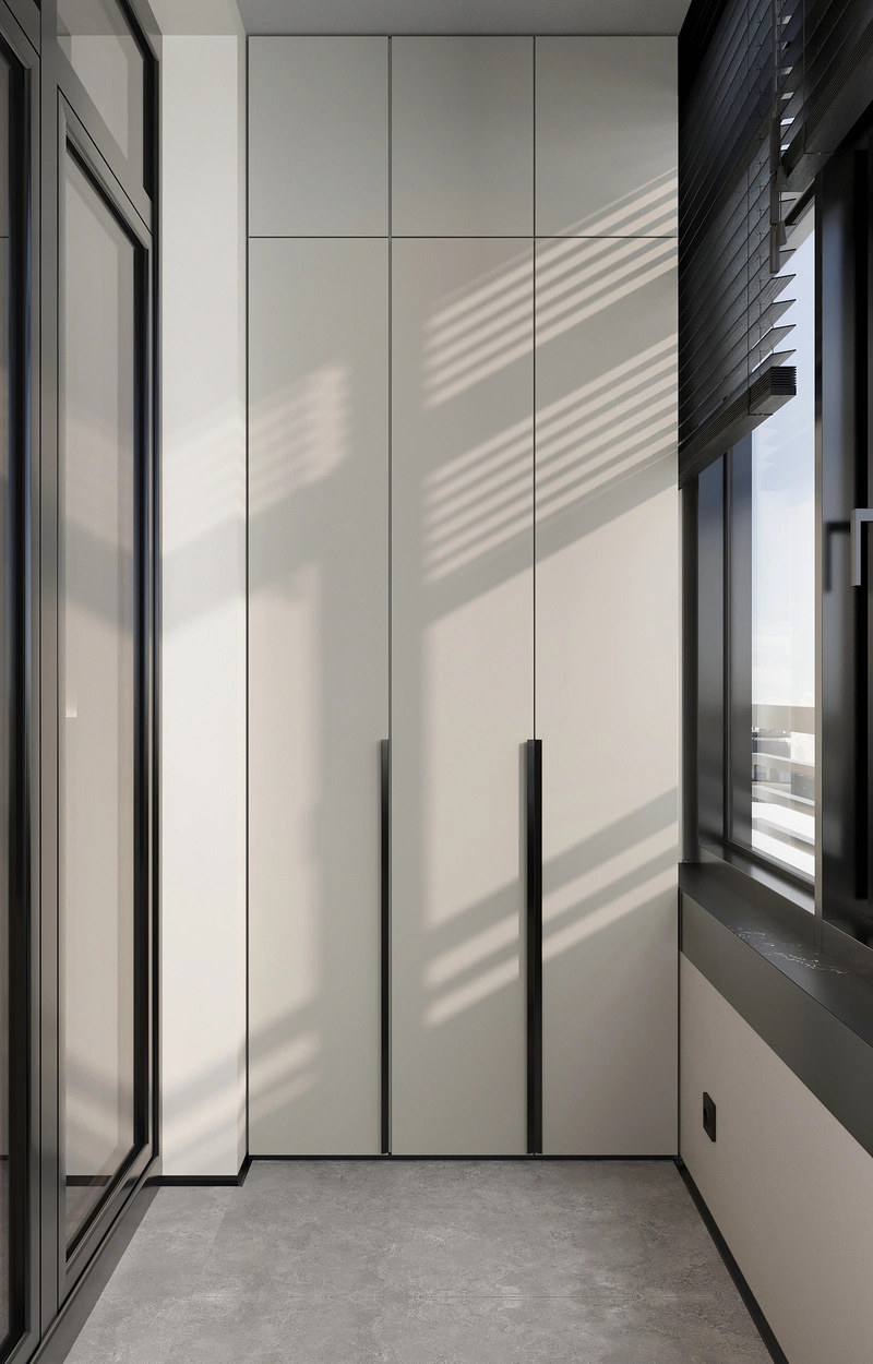 Система хранения во всю высоту в прихожей. Помогла скрыть все повседневные вещи и сохранить аккуратный вид входной зоны. Вертикальные фасады визуально вытягивают пространство и делают его более собранным.