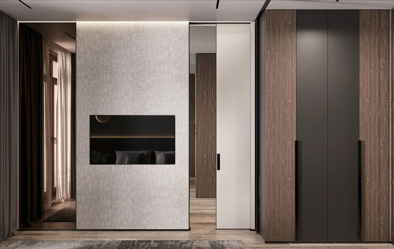 Мебельные панели ЛДСП и МДФ — использованы во встроенной мебели и системах хранения. Материалы практичны, устойчивы к ежедневным нагрузкам и позволяют создать цельные мебельные объёмы без визуальной дробности.