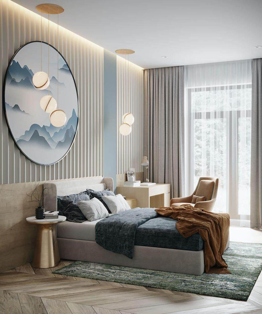 - Авторская мебель в спальне, разработанная дизайнером по требованию клиента