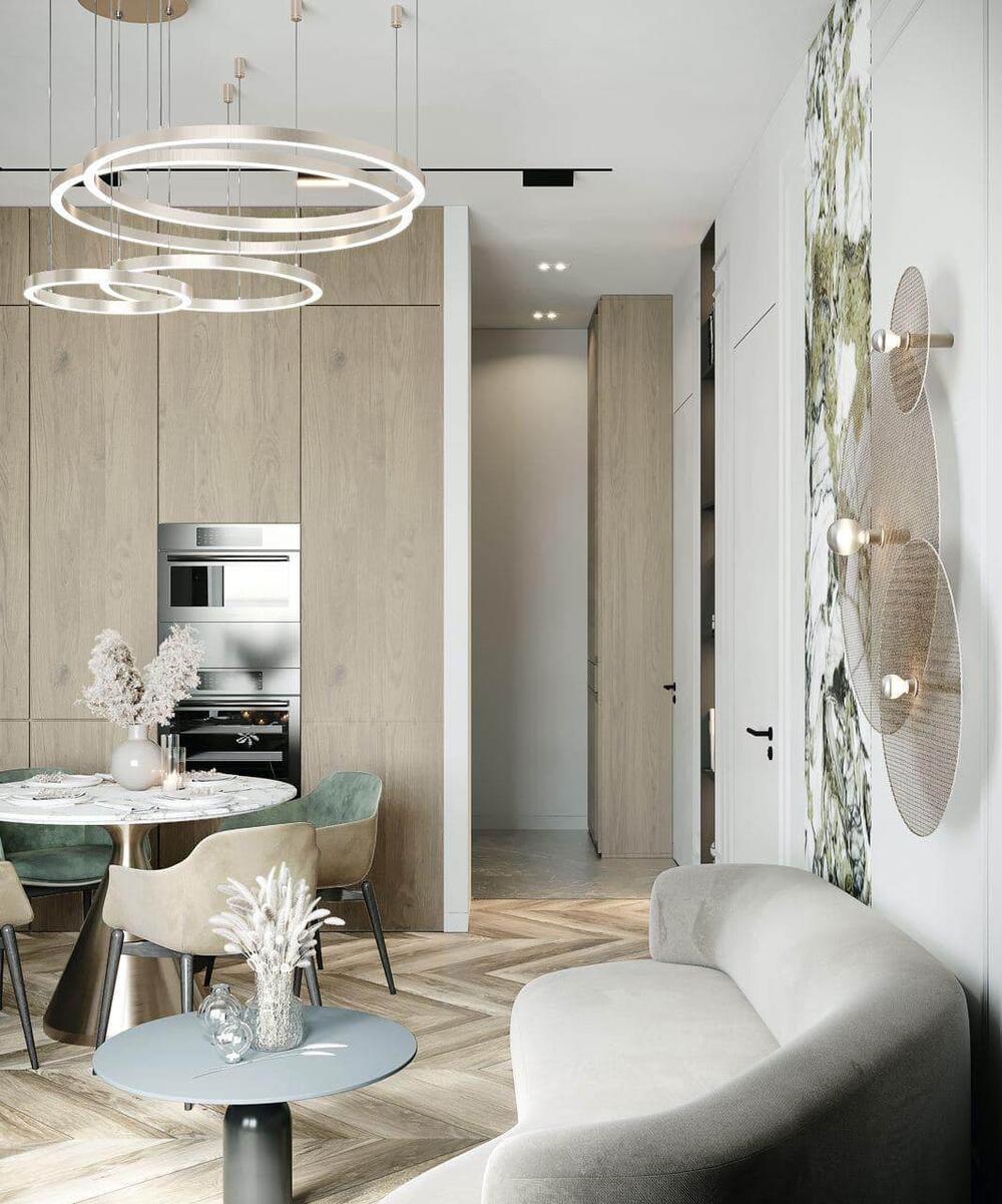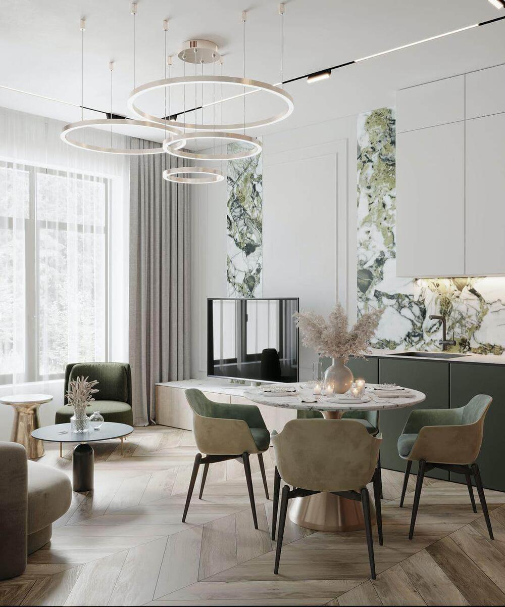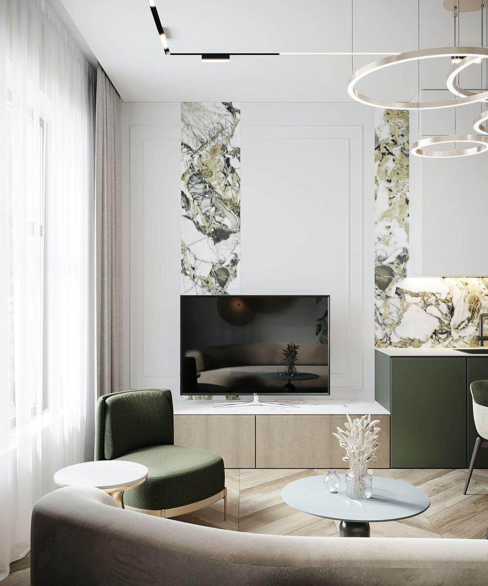 Дизайн интерьера квартиры в ЖК "Петровская Доминанта" с зелеными акцентами
