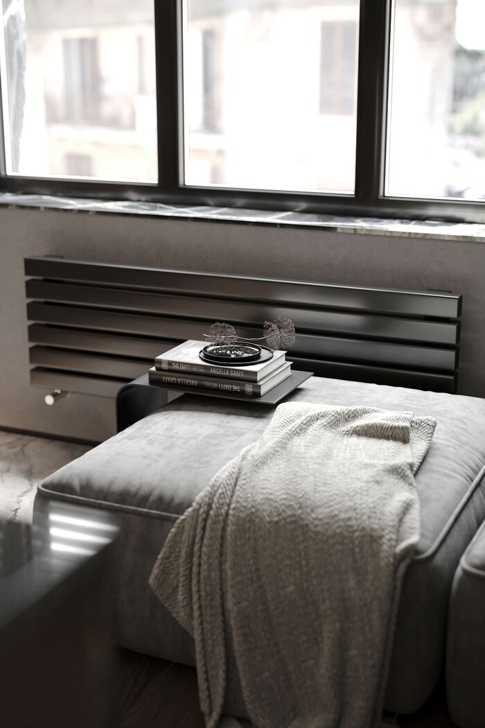 В центре зоны отдыха — модульный диван глубокого графитового оттенка. Он легко адаптируется под нужды хозяев: можно менять его конфигурацию, создавая больше мест для гостей или, наоборот, уединенную лаунж-зону.
