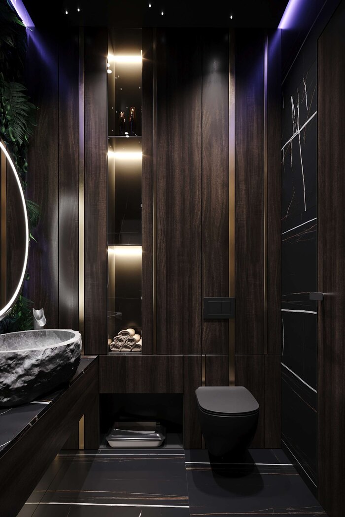 Санузел в этом проекте стал воплощением смелых дизайнерских решений и современных технологий.