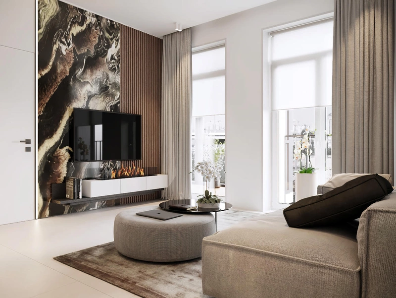Теплый современный дизайн интерьера квартиры в ЖК «Магнифика» - 101 м²