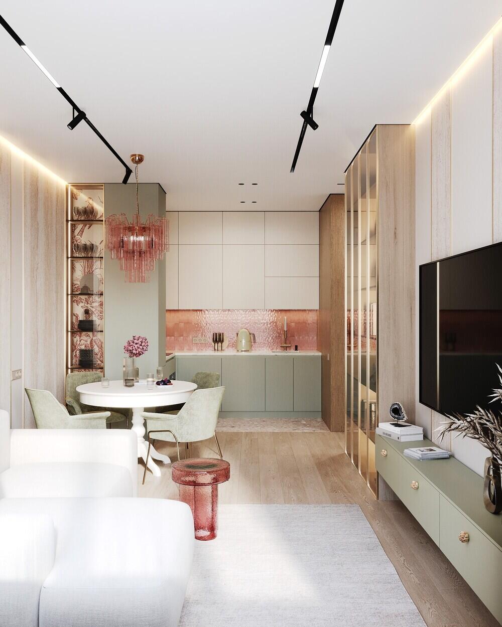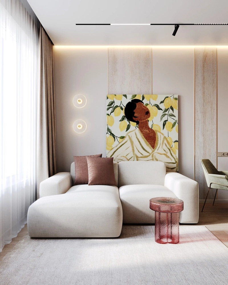Яркий дизайн интерьера квартиры в современном стиле с элементами эклектики в ЖК Черная речка,41 - 60 м2