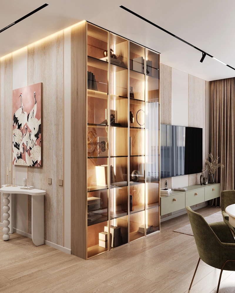 Посмотреть проектCовременный дизайн интерьера с элементами экостиля и джапанди в ЖК "Symphony" - 93 м2