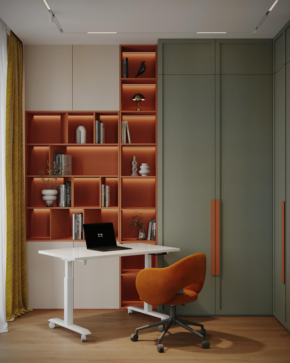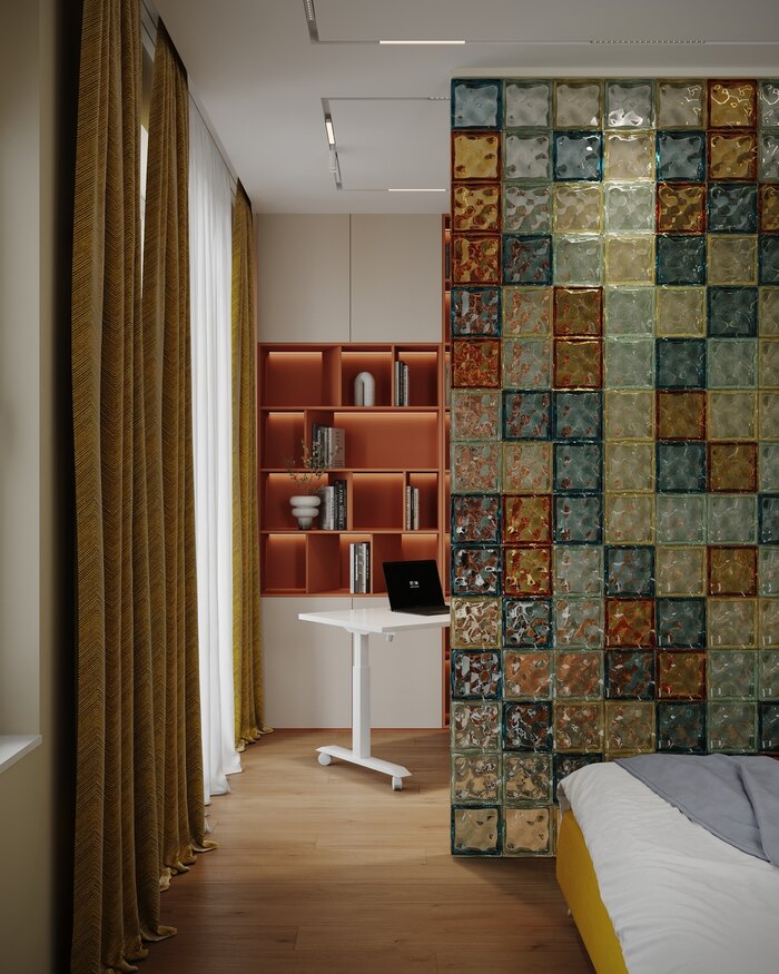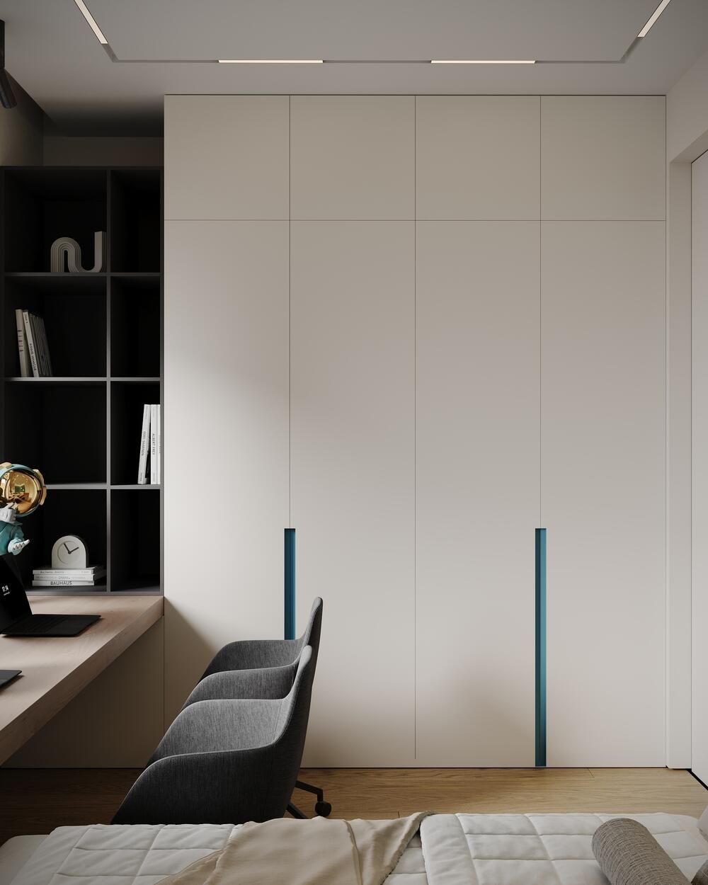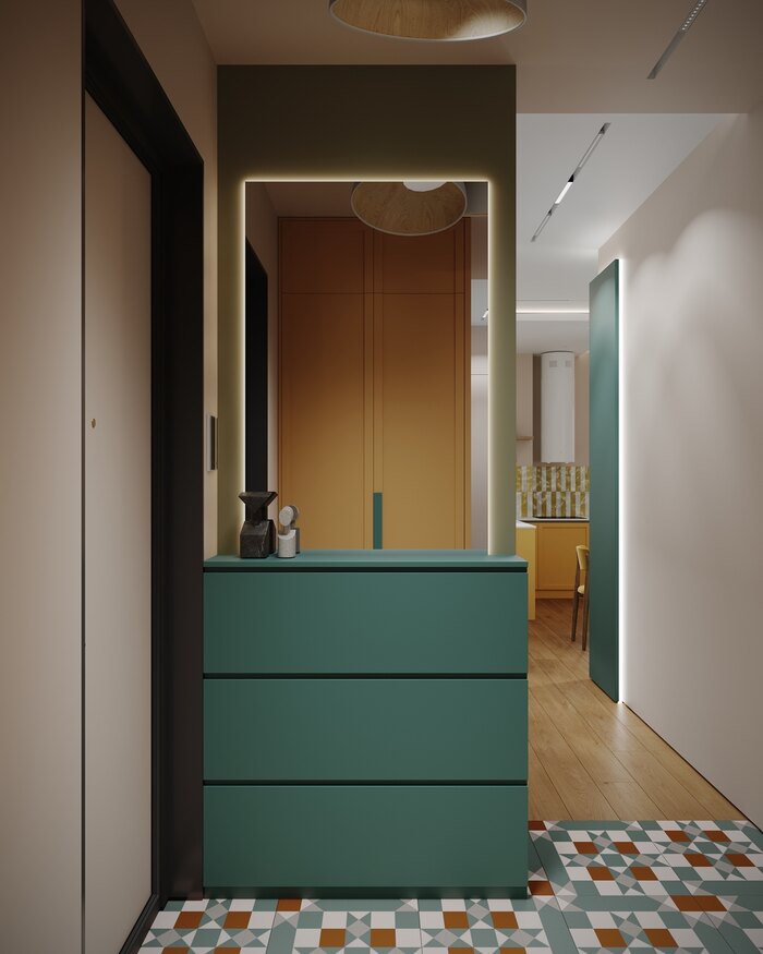 Посмотреть проектCовременный минимализм с яркими акцентами в дизайне интерьера квартиры в ЖК «Кремлевские звезды» — 87 м2