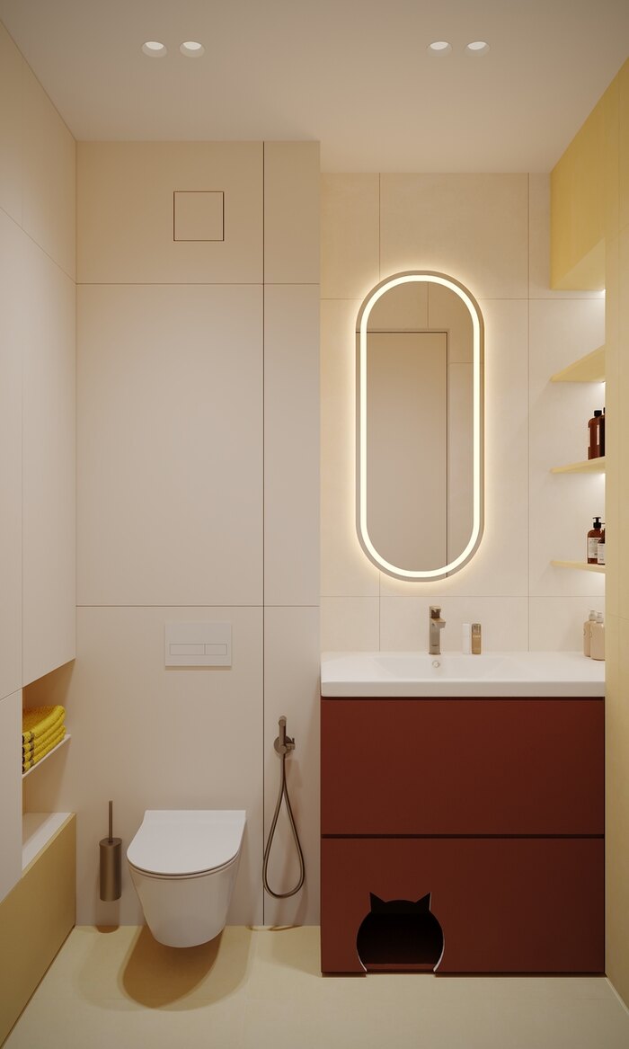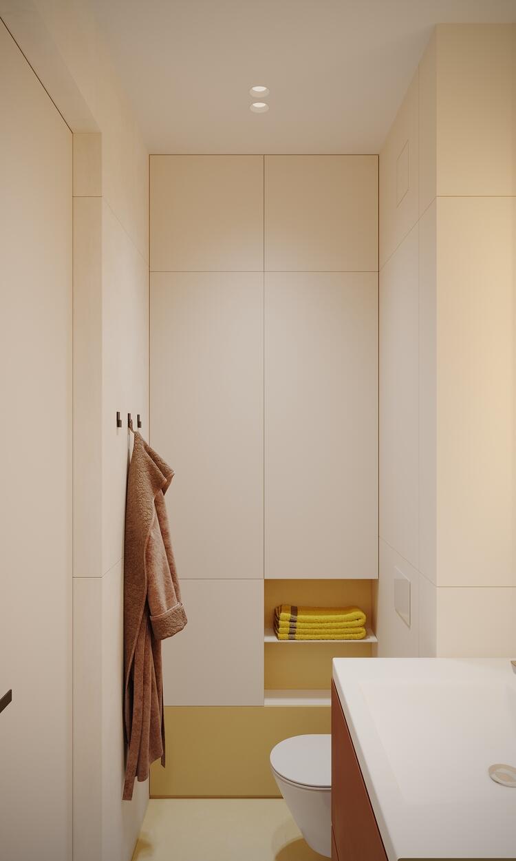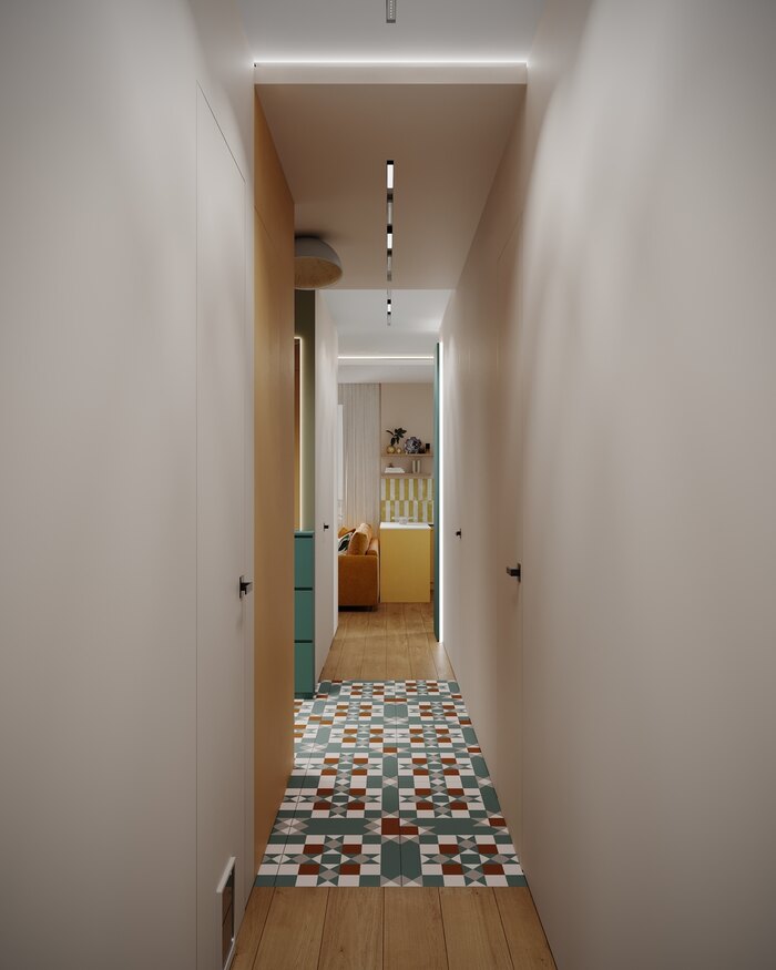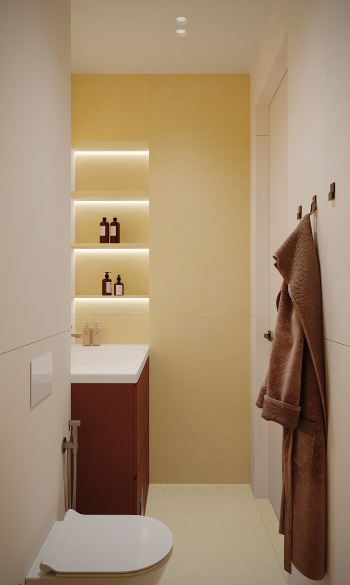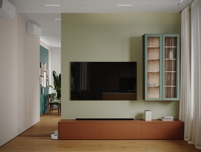 Посмотреть проектCовременный минимализм с яркими акцентами в дизайне интерьера квартиры в ЖК «Кремлевские звезды» — 87 м2